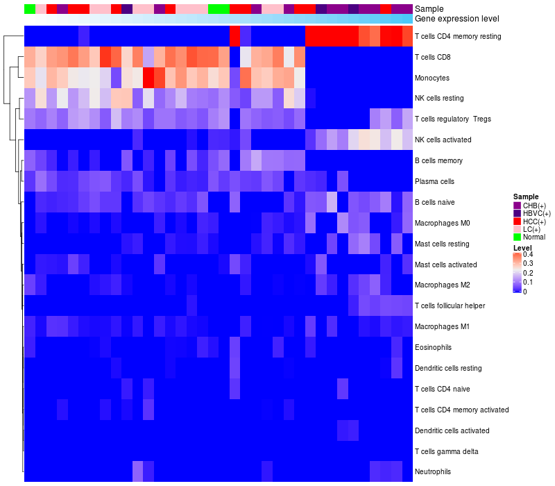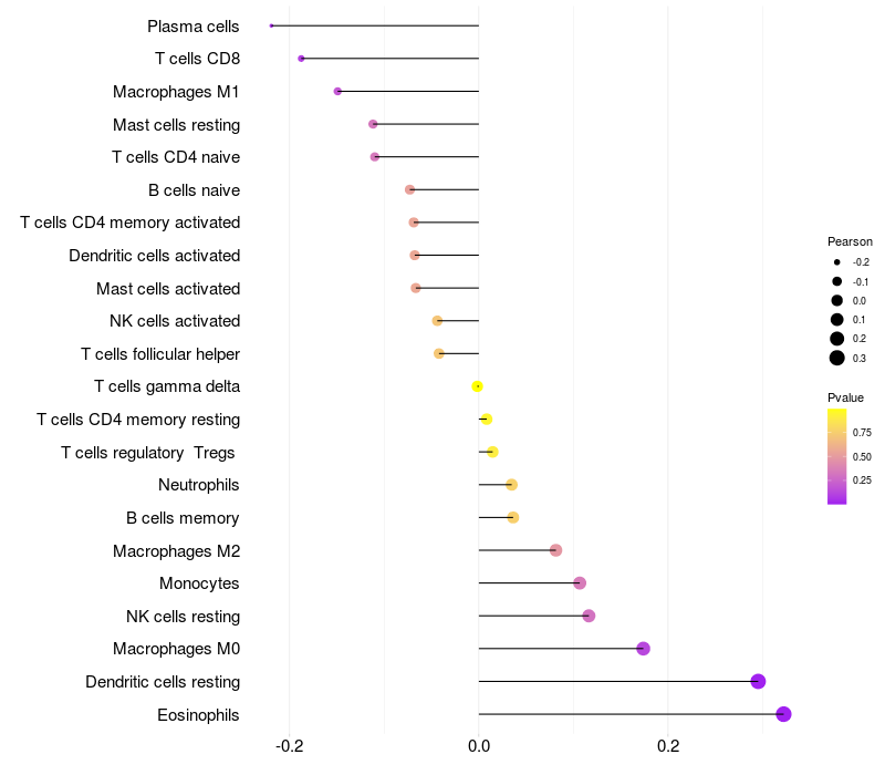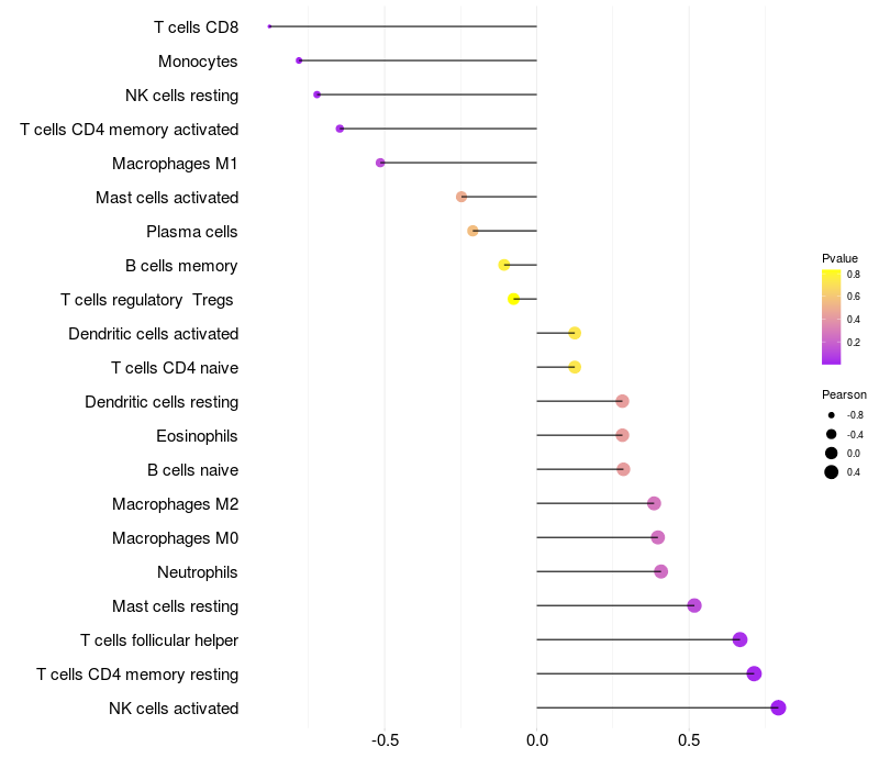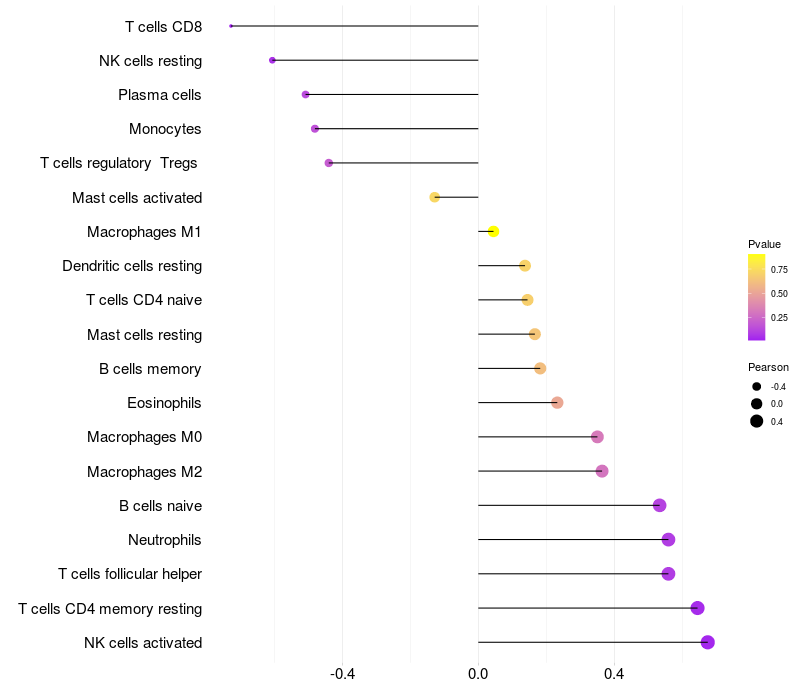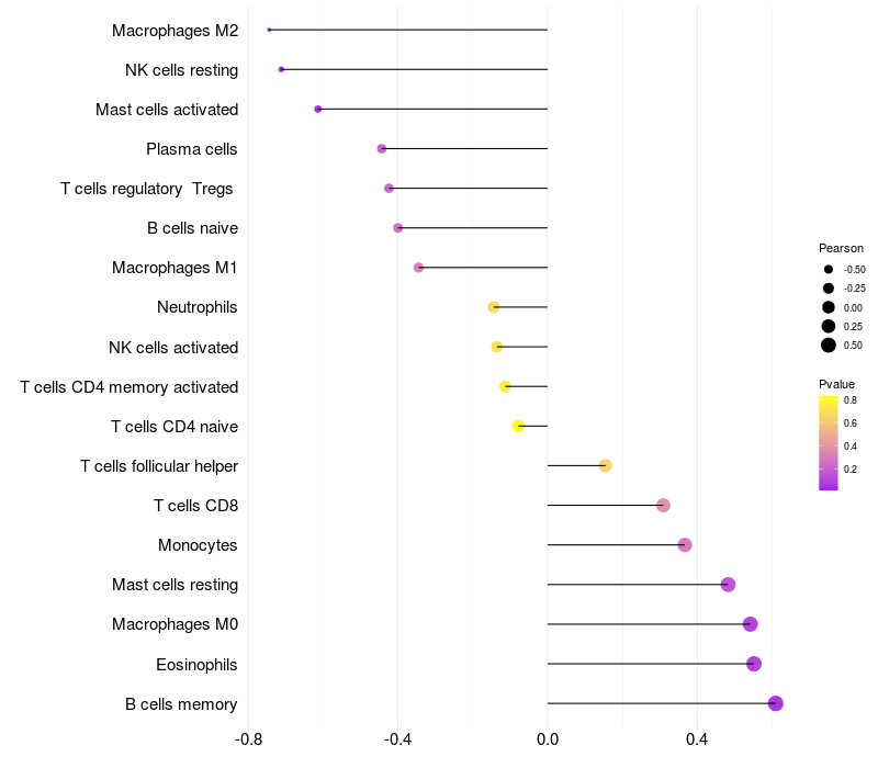 Lollipop of LRPPRC expression and immune infiltrating cell level correlation result in HBV+ Liver cirrhosis samples