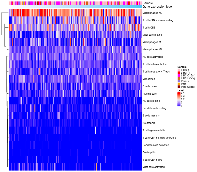 Relationship between gene expression and immune infiltrating cell level