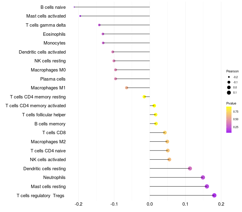 Lollipop of LRRC20 expression and immune infiltrating cell level correlation result in HBV+ Liver cirrhosis samples