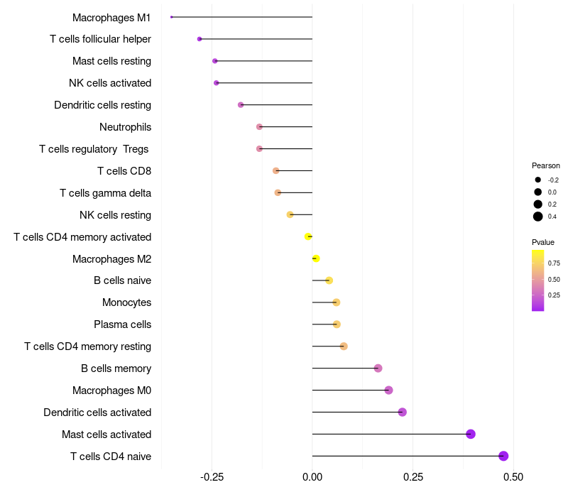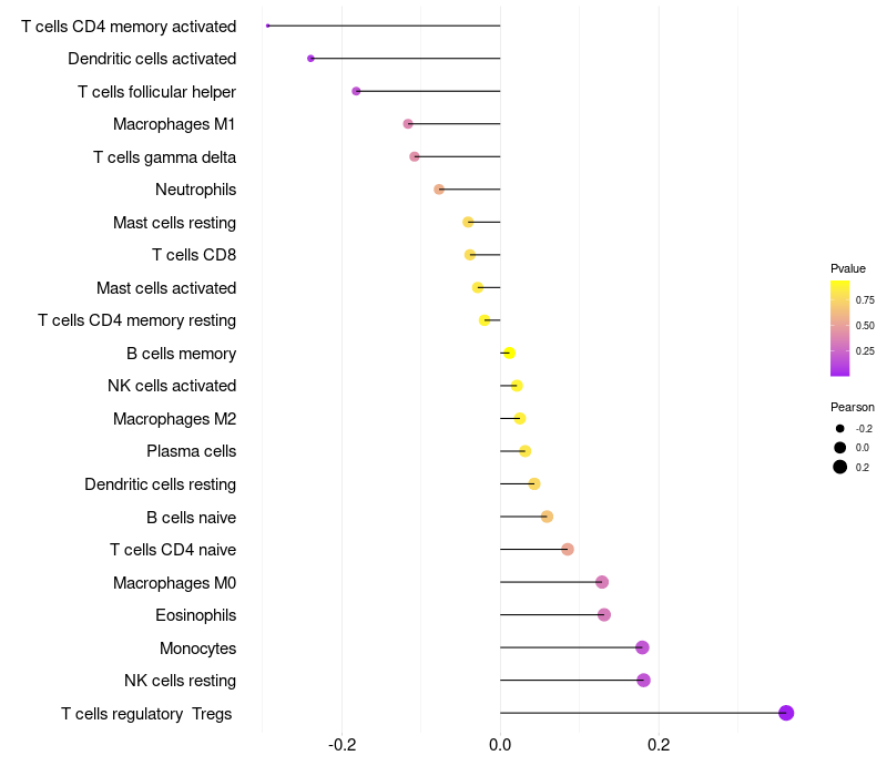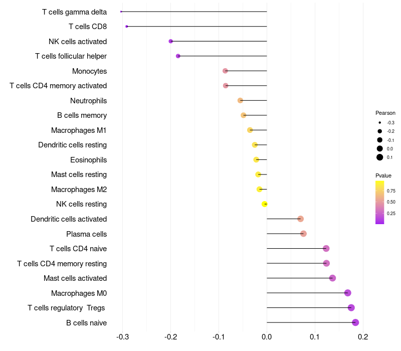 HeatMap of cell type fractions in all samples Lollipop of LRRC36 expression and immune infiltrating cell level correlation result in HPV+ samples