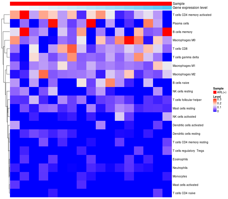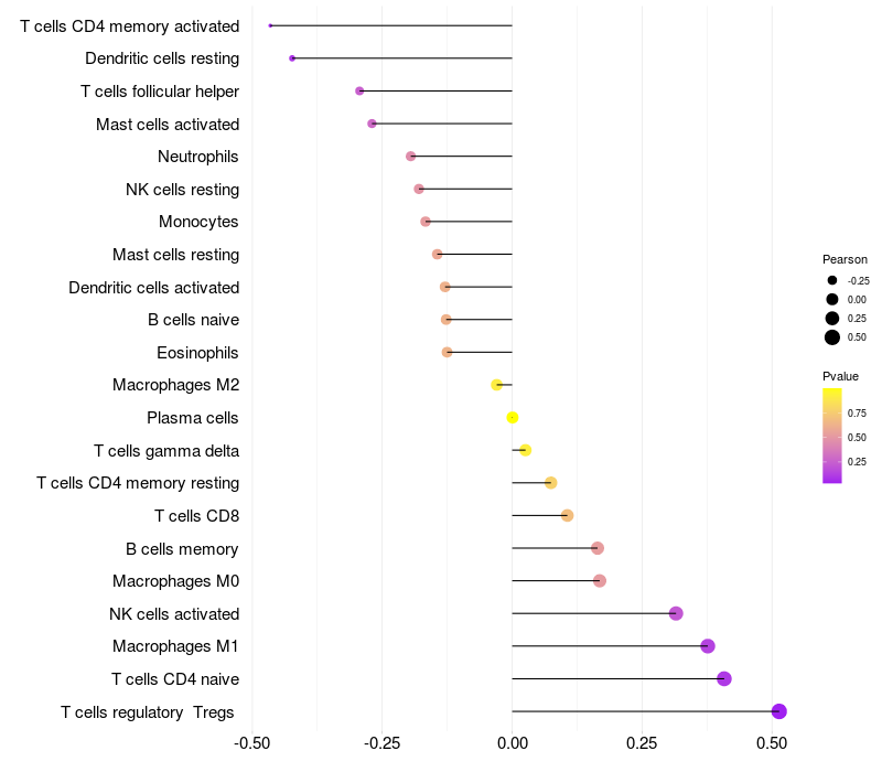 Relationship between gene expression and immune infiltrating cell level