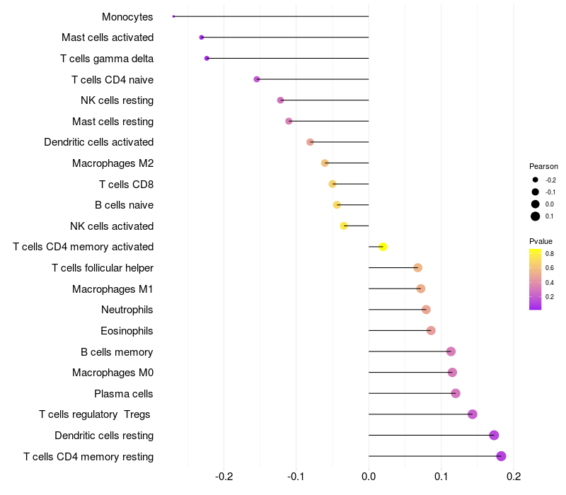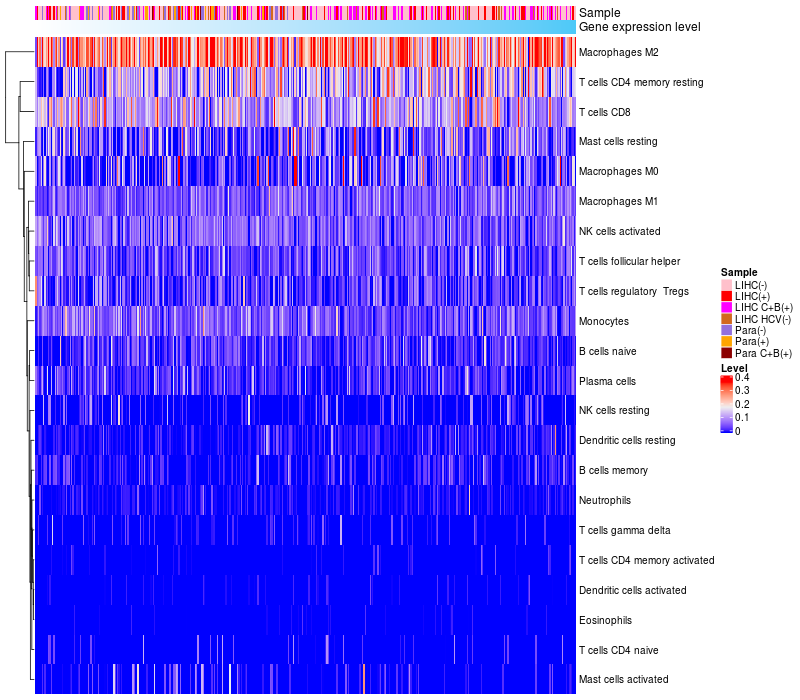 Relationship between gene expression and immune infiltrating cell level