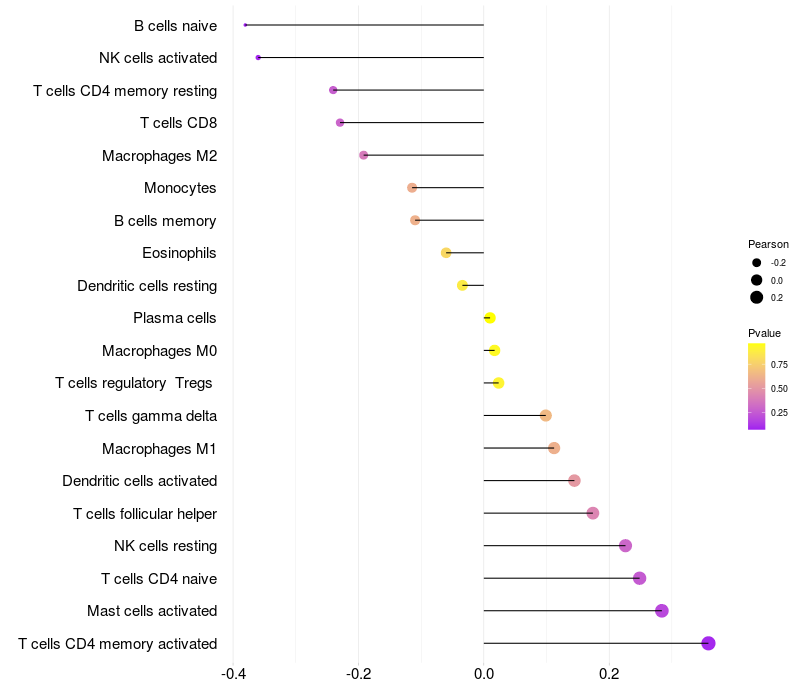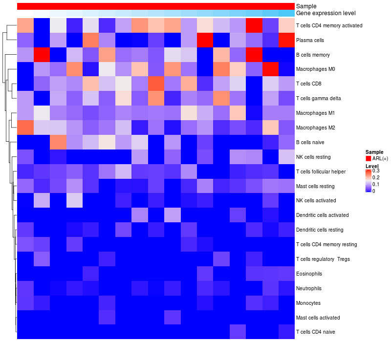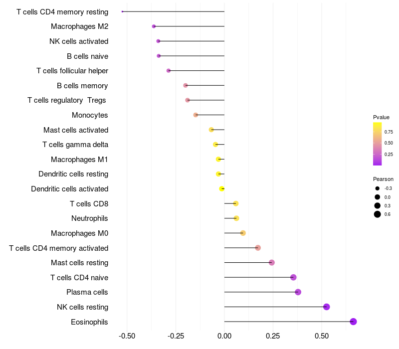 Relationship between gene expression and immune infiltrating cell level