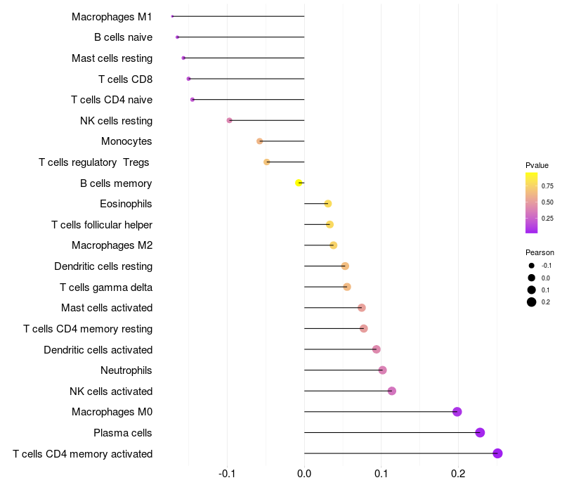 Relationship between gene expression and immune infiltrating cell level
