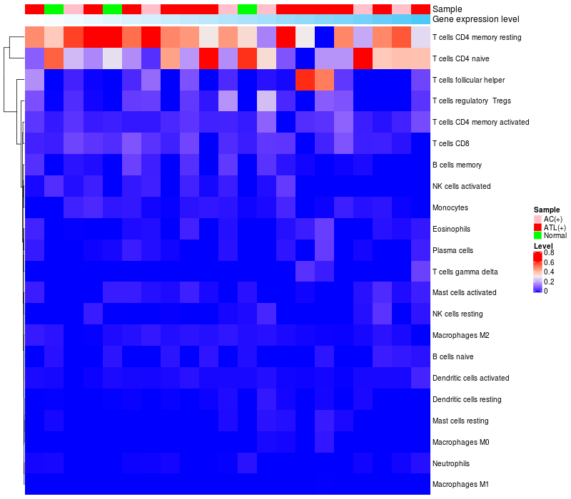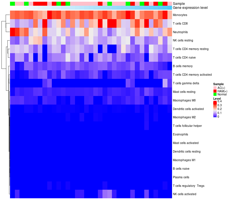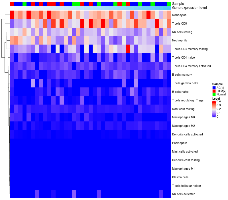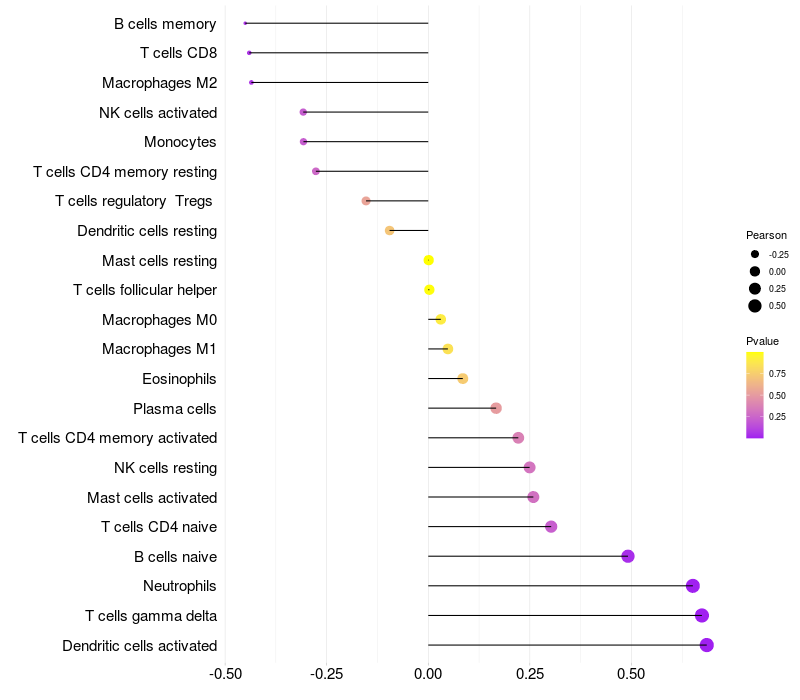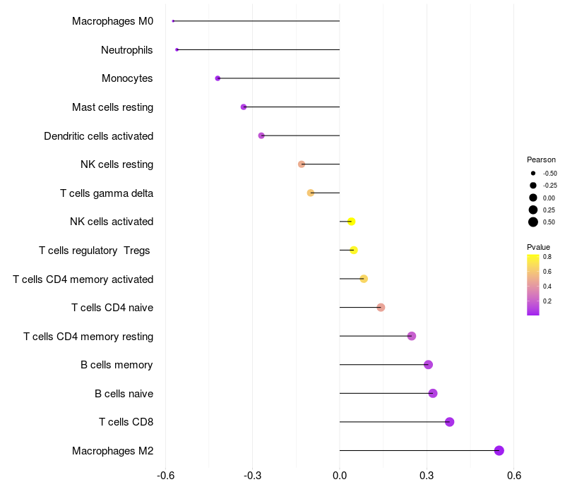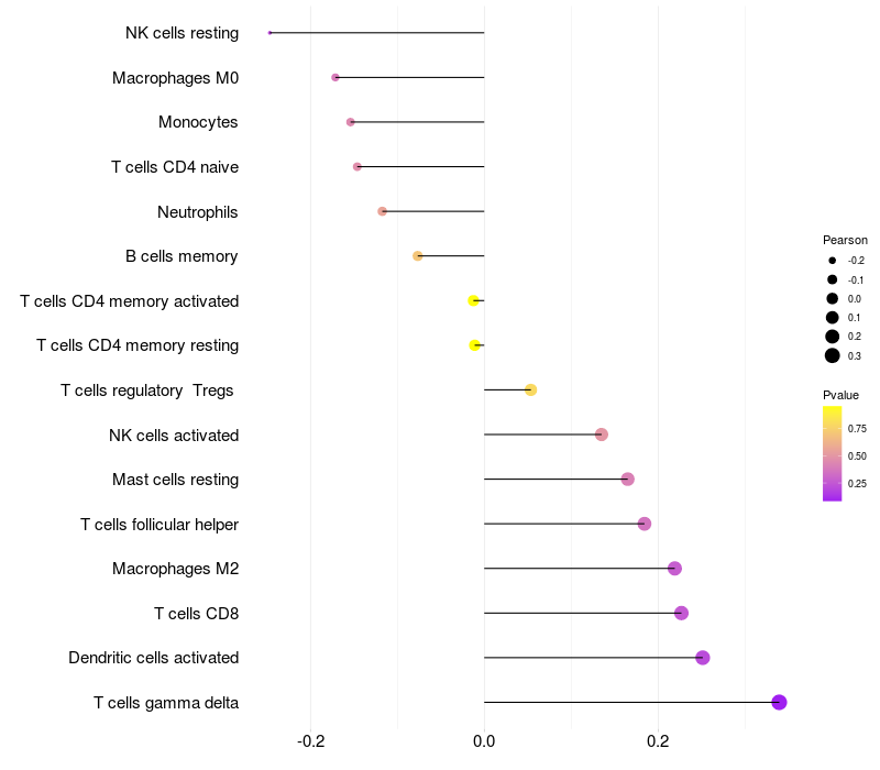 Lollipop of LSM5 expression and immune infiltrating cell level correlation result in HTLV1+ samples