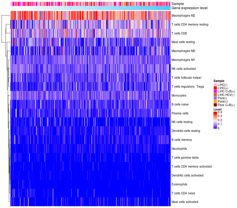 Relationship between gene expression and immune infiltrating cell level