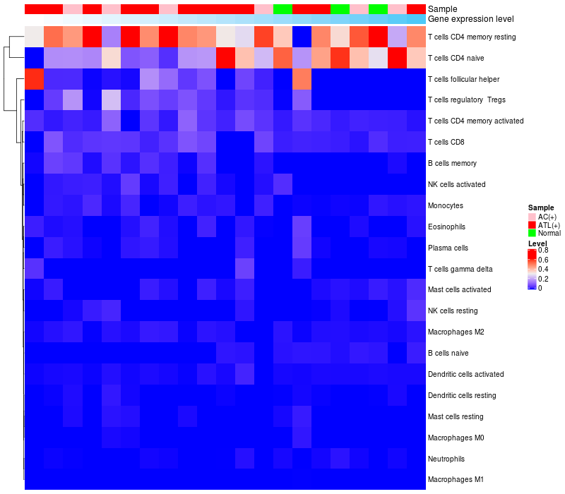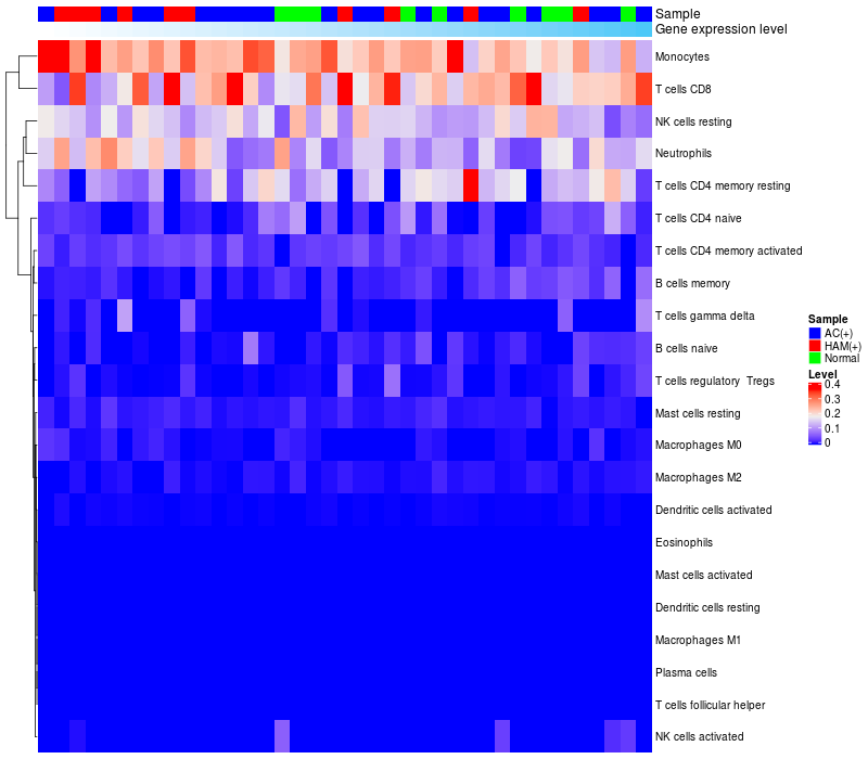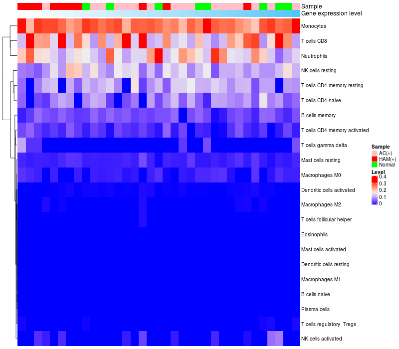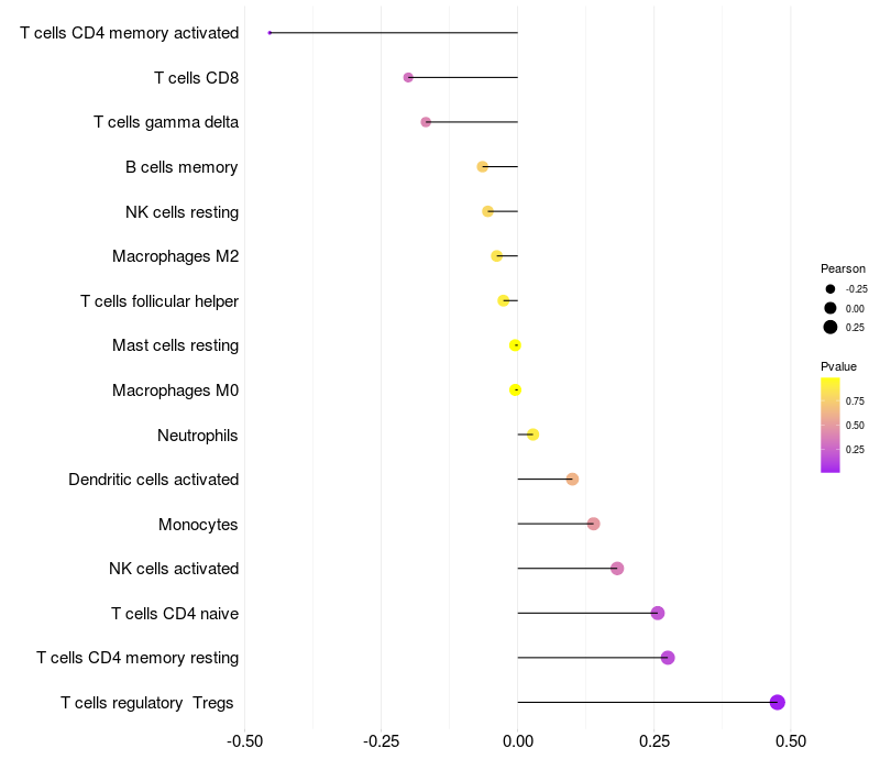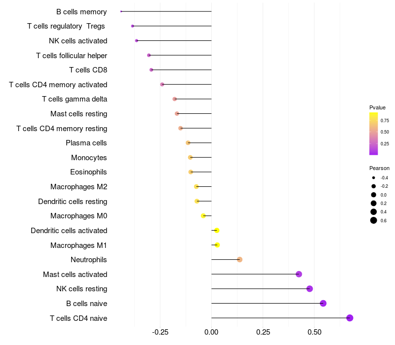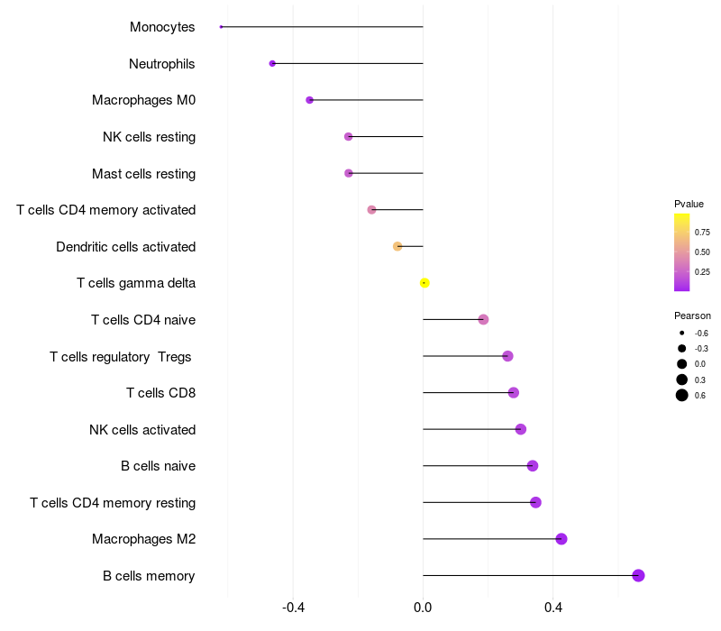 Relationship between gene expression and immune infiltrating cell level