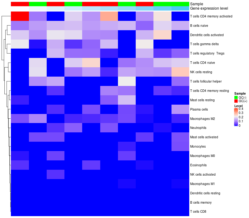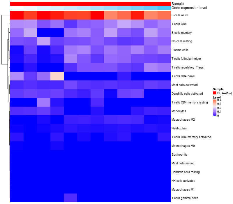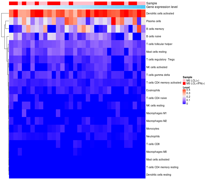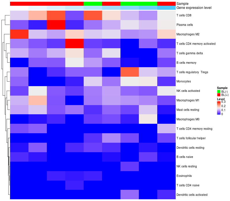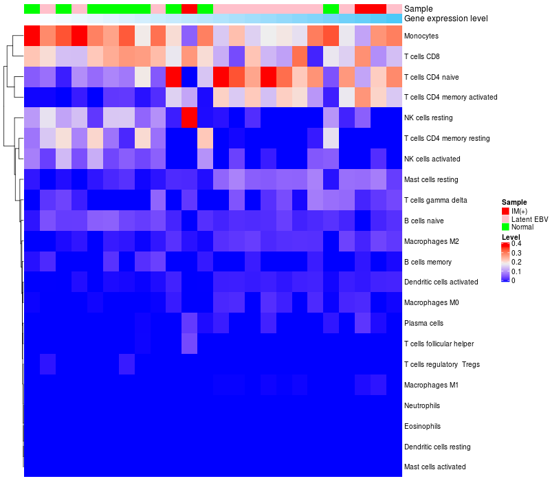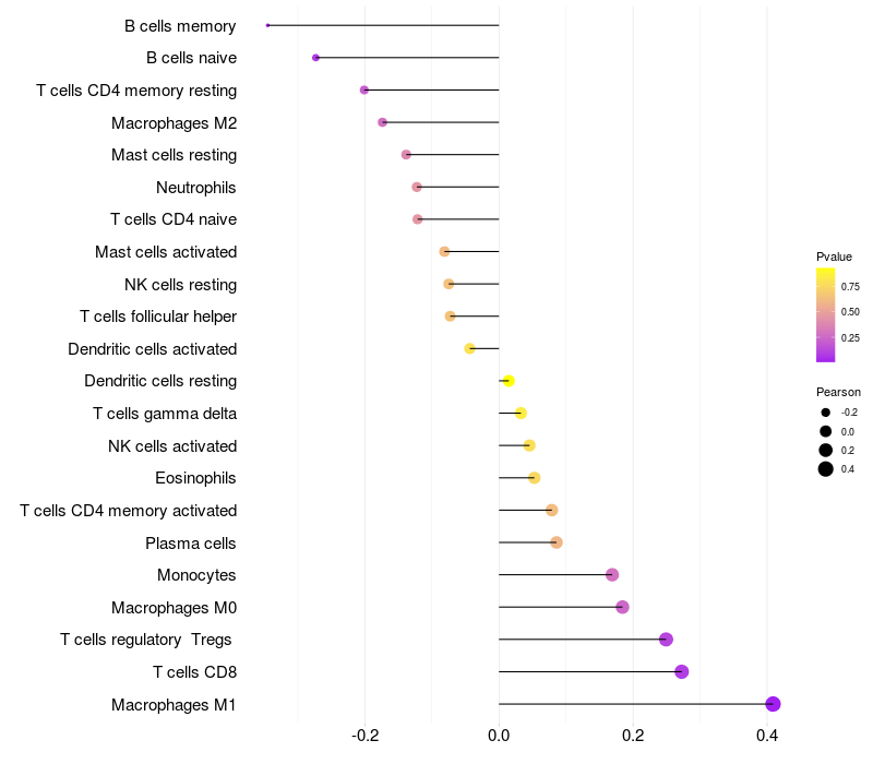 Lollipop of LTBP1 expression and immune infiltrating cell level correlation result in EBV+ samples