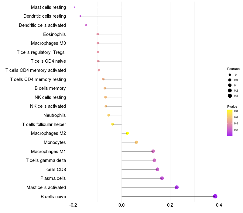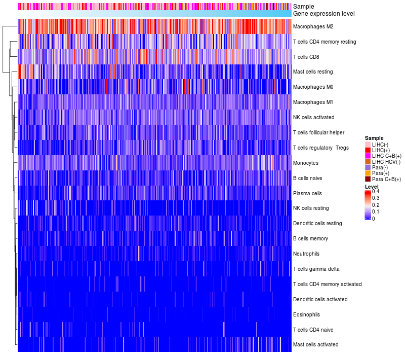 Relationship between gene expression and immune infiltrating cell level