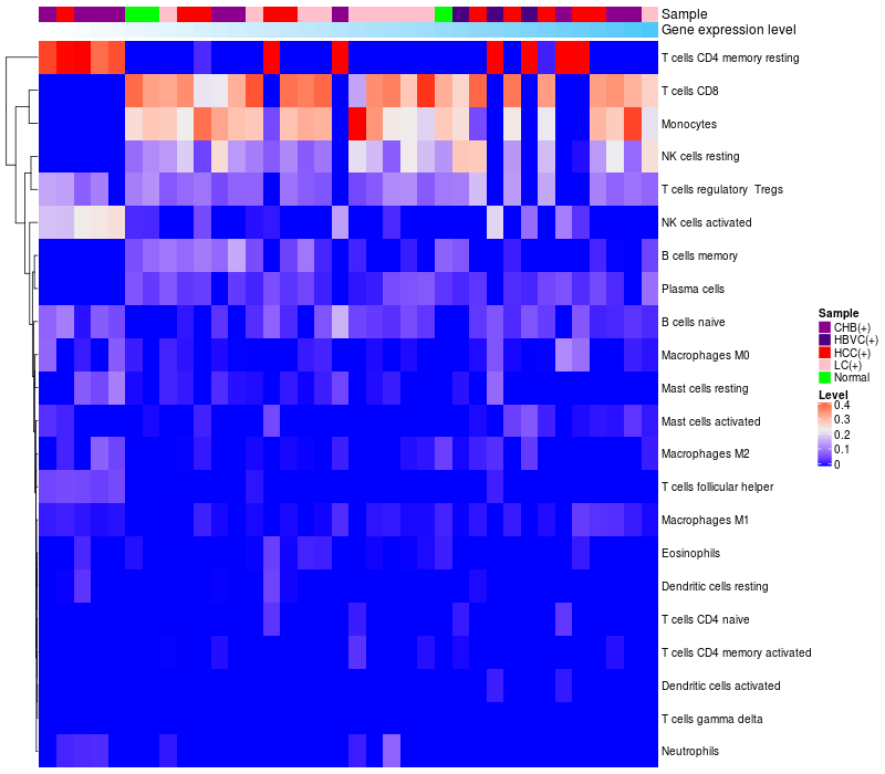 Relationship between gene expression and immune infiltrating cell level