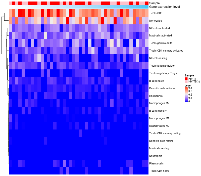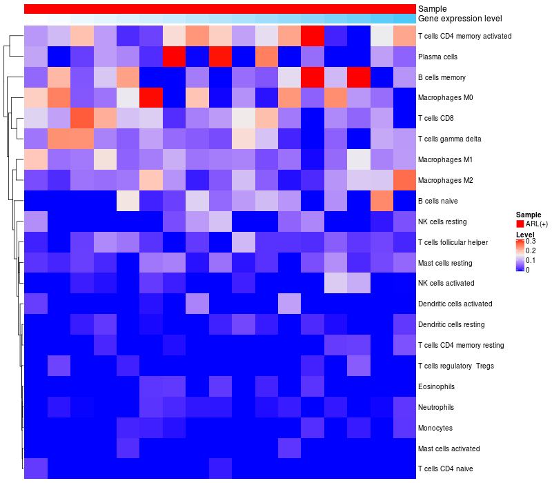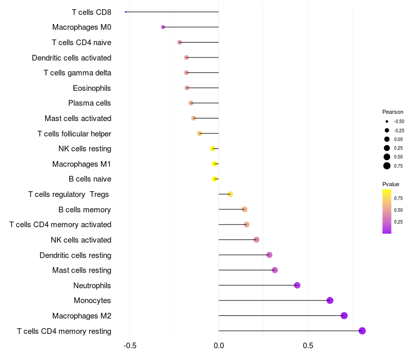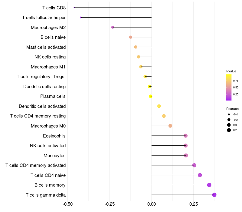Relationship between gene expression and immune infiltrating cell level