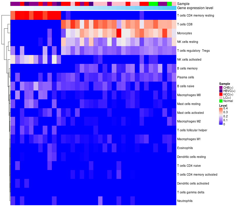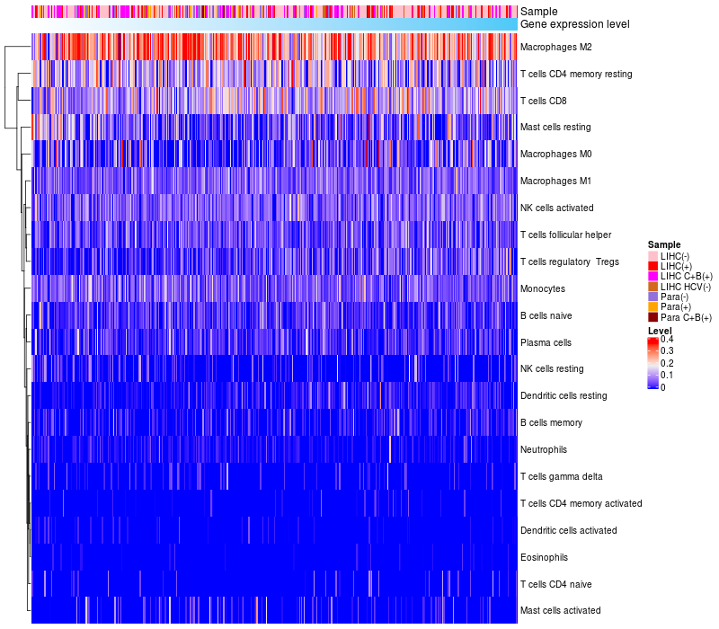 Liver hepatocellular carcinoma HCV (HBV+)(86), Liver hepatocellular carcinoma HCV (HBV-)(19), Liver hepatocellular carcinoma (HBV+)(209), Liver hepatocellular carcinoma (HBV+)(60), Paracancerous HCV (HBV+)(4), Paracancerous (HBV-)(28), Paracancerous (HBV+)(18) |