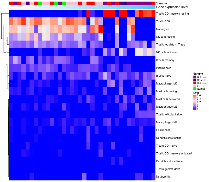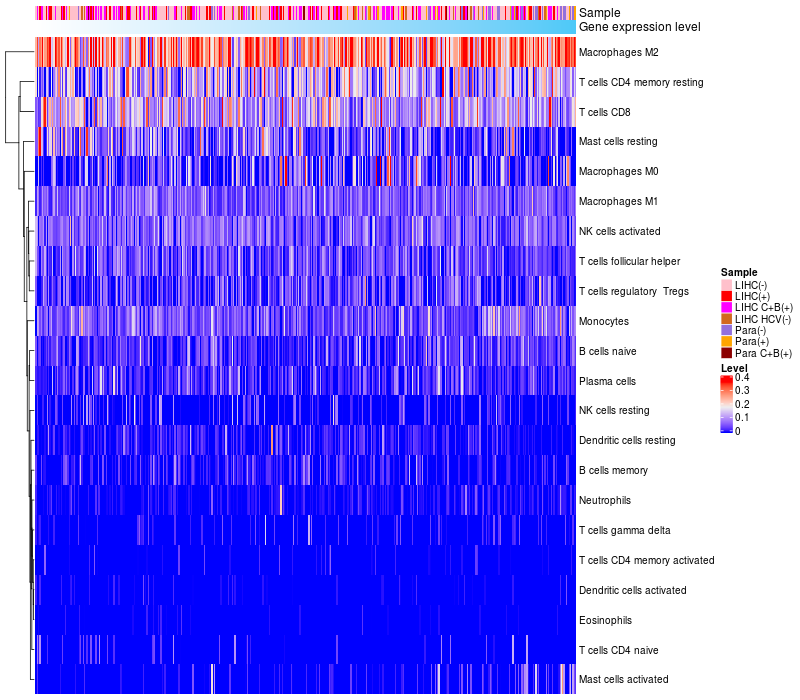 Liver hepatocellular carcinoma HCV (HBV+)(86), Liver hepatocellular carcinoma HCV (HBV-)(19), Liver hepatocellular carcinoma (HBV+)(209), Liver hepatocellular carcinoma (HBV+)(60), Paracancerous HCV (HBV+)(4), Paracancerous (HBV-)(28), Paracancerous (HBV+)(18) |