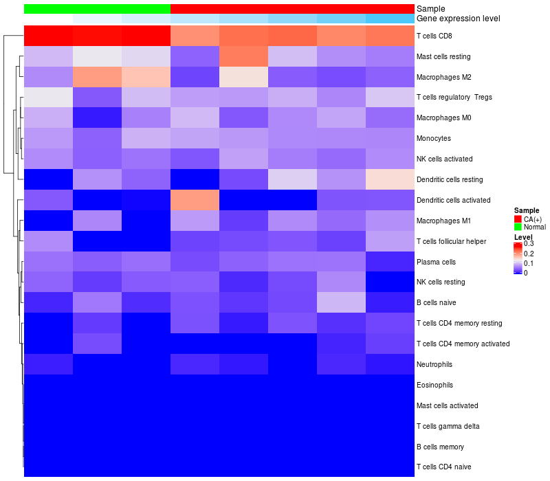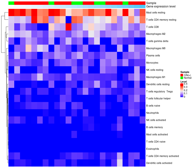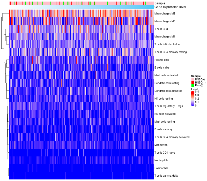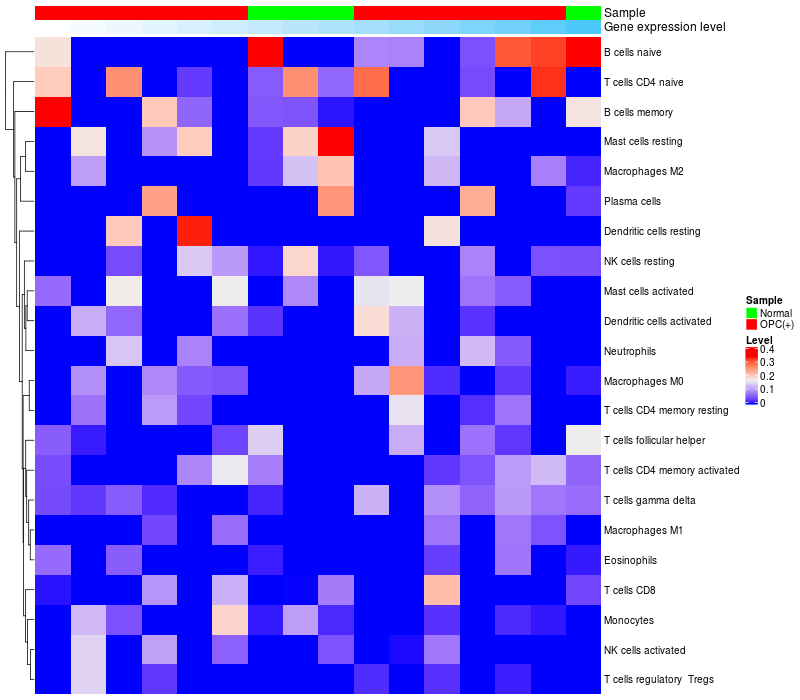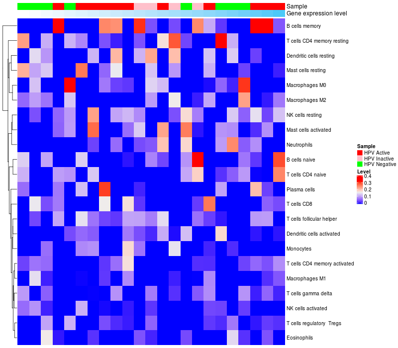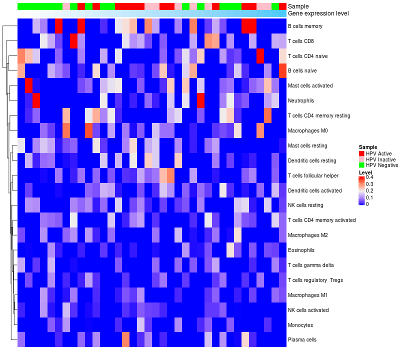 Lollipop of MAGEB16 expression and immune infiltrating cell level correlation result in HPV+ samples