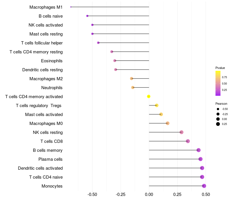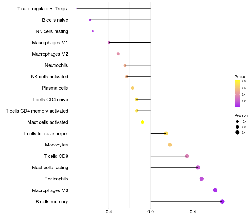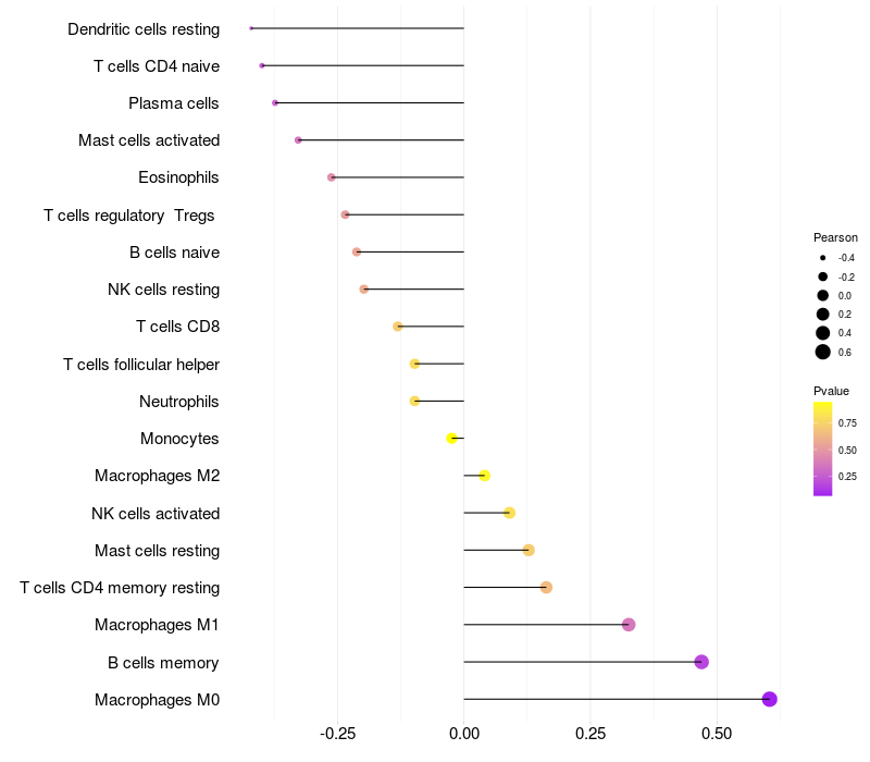 Lollipop of MAML2 expression and immune infiltrating cell level correlation result in HBV+ Liver cirrhosis samples