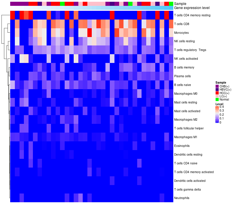 Lollipop of MAML2 expression and immune infiltrating cell level correlation result in HBV+ Hepatocellular carcinoma samples