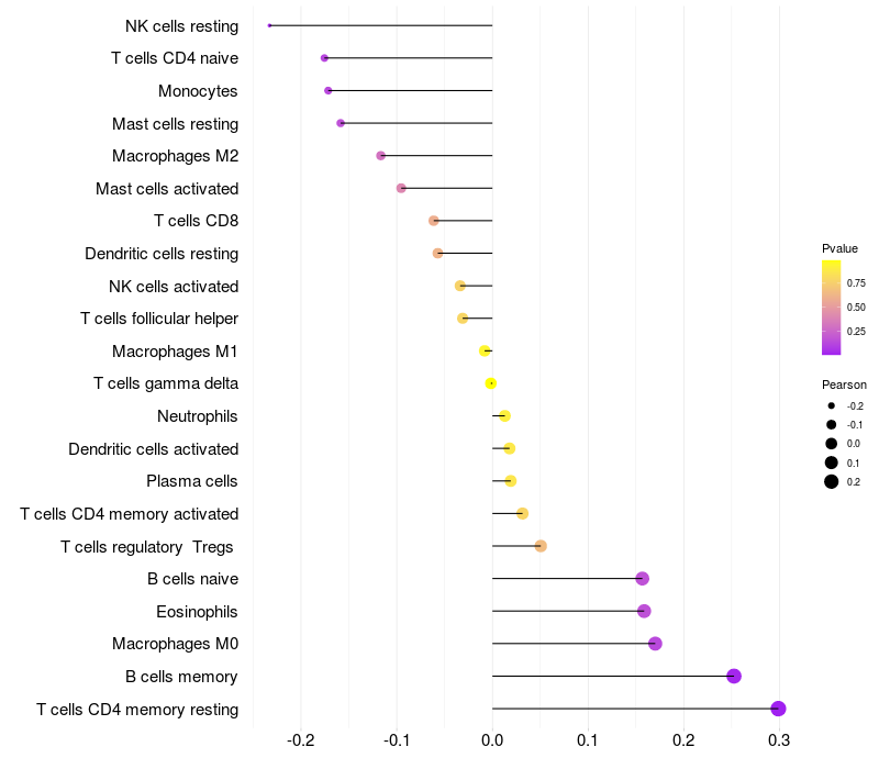 Lollipop of MAML2 expression and immune infiltrating cell level correlation result in HBV+ Chronic HBV (CHB) infection samples