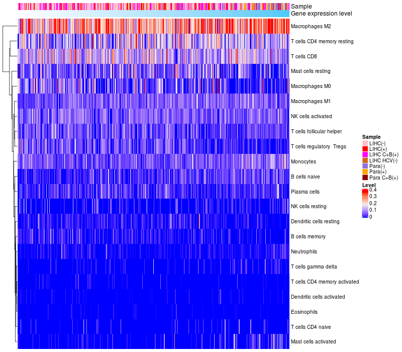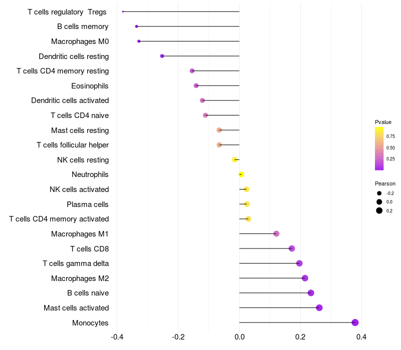 Relationship between gene expression and immune infiltrating cell level
