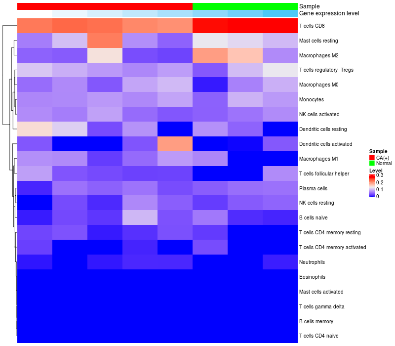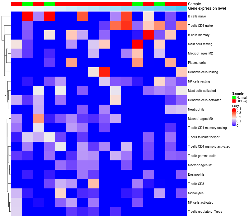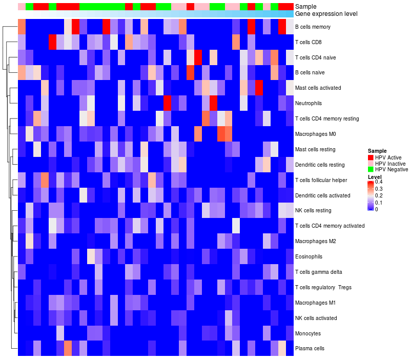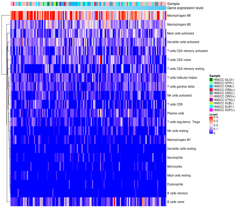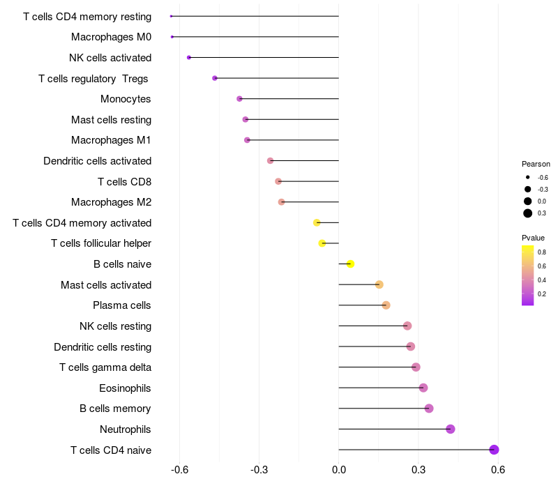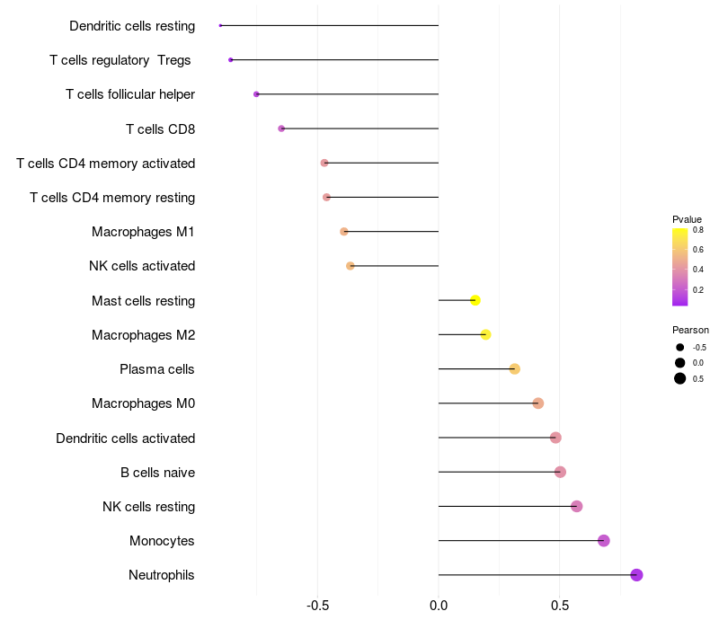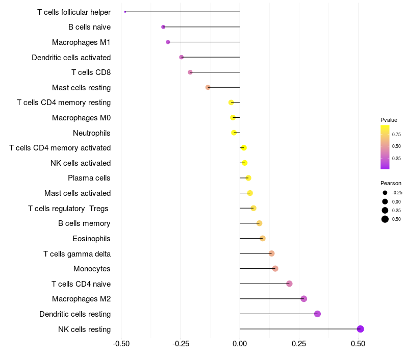 Lollipop of MAOA expression and immune infiltrating cell level correlation result in HPV+ samples