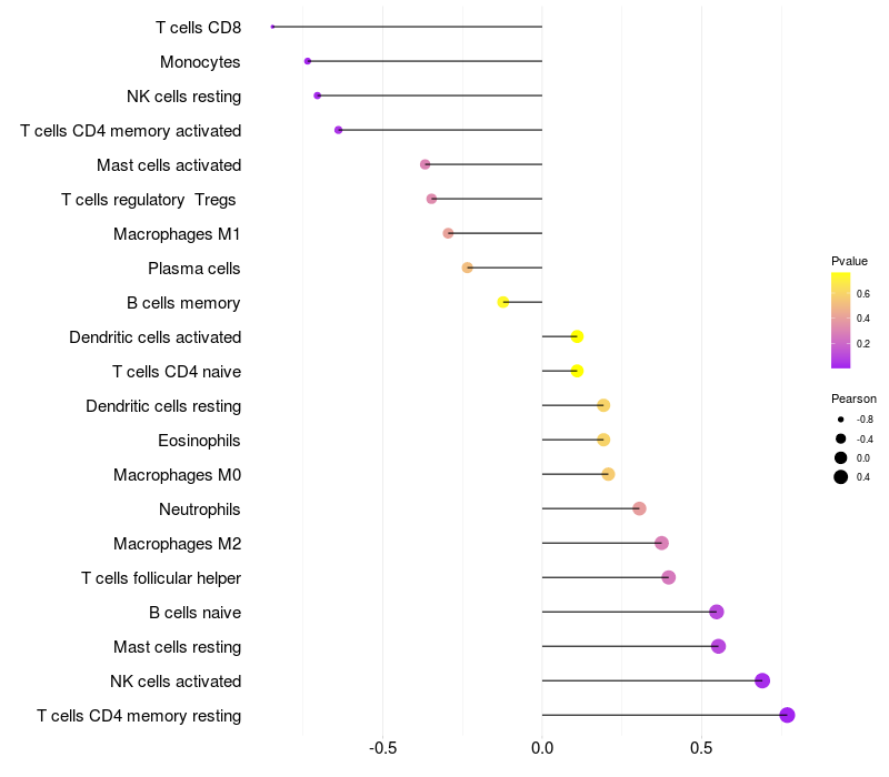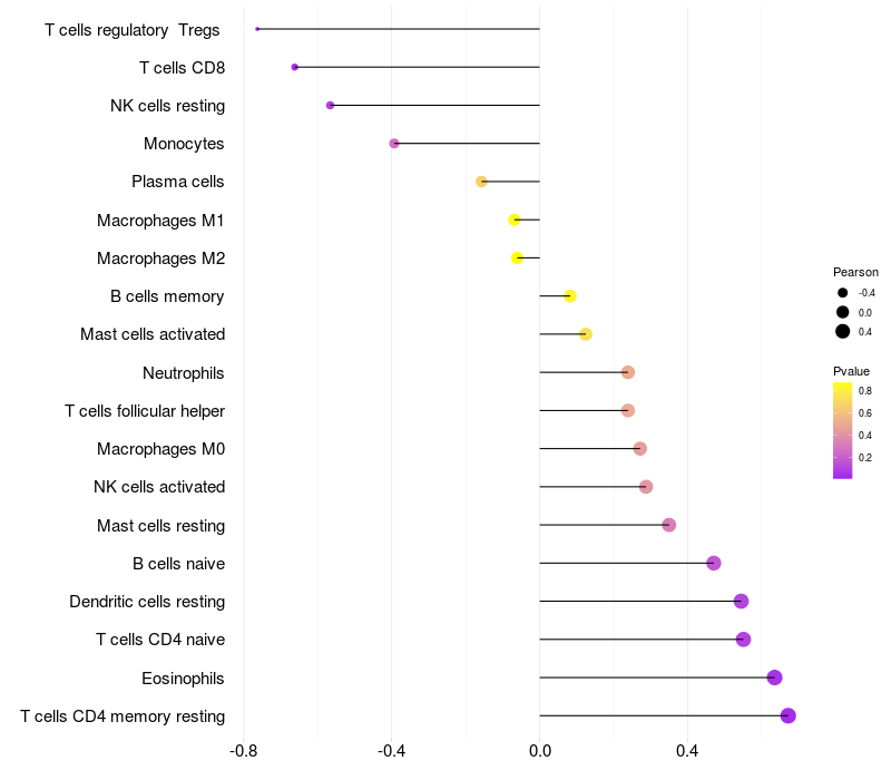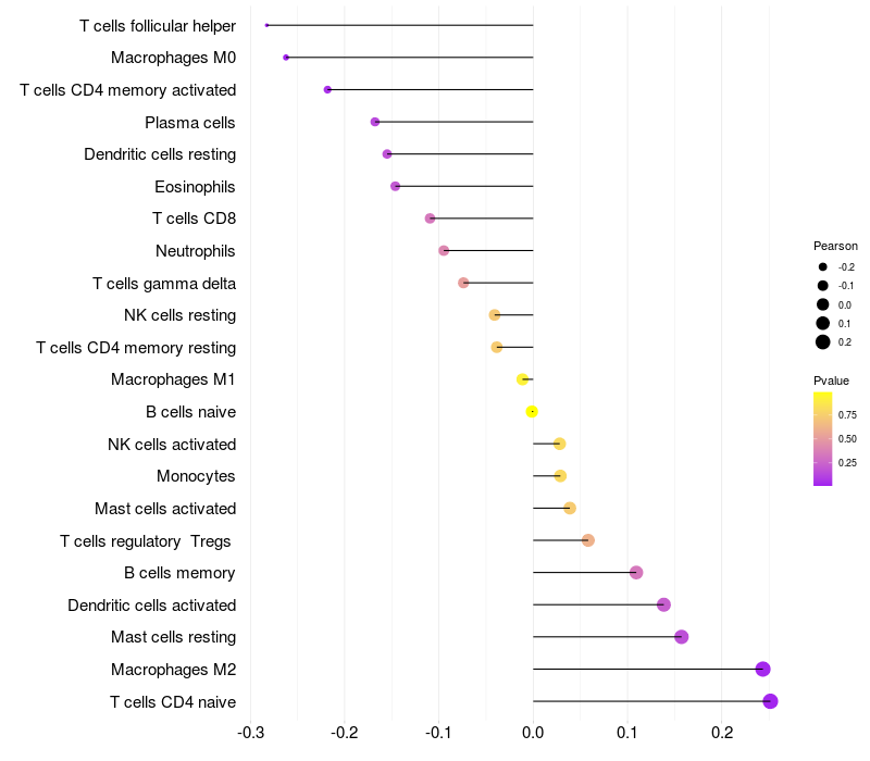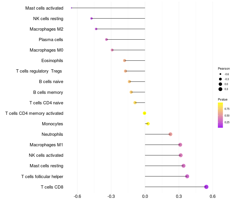 Lollipop of MAP2K5 expression and immune infiltrating cell level correlation result in HBV+ Liver cirrhosis samples