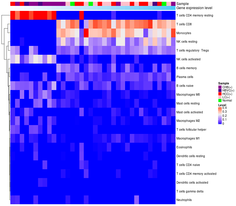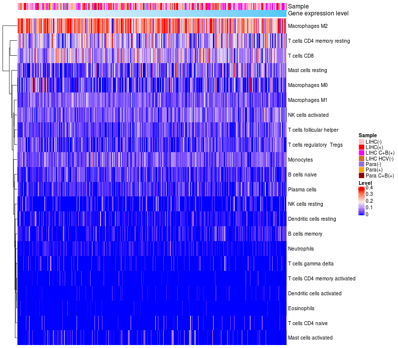 Liver hepatocellular carcinoma HCV (HBV+)(86), Liver hepatocellular carcinoma HCV (HBV-)(19), Liver hepatocellular carcinoma (HBV+)(209), Liver hepatocellular carcinoma (HBV+)(60), Paracancerous HCV (HBV+)(4), Paracancerous (HBV-)(28), Paracancerous (HBV+)(18) |