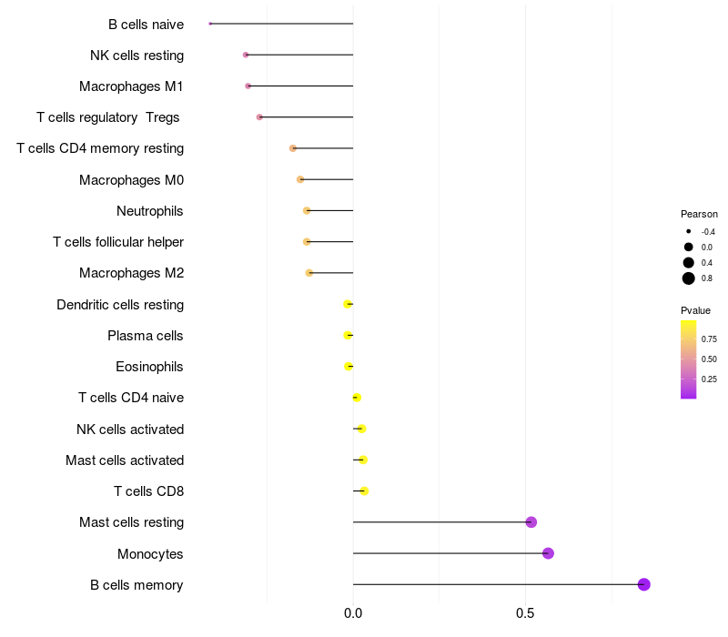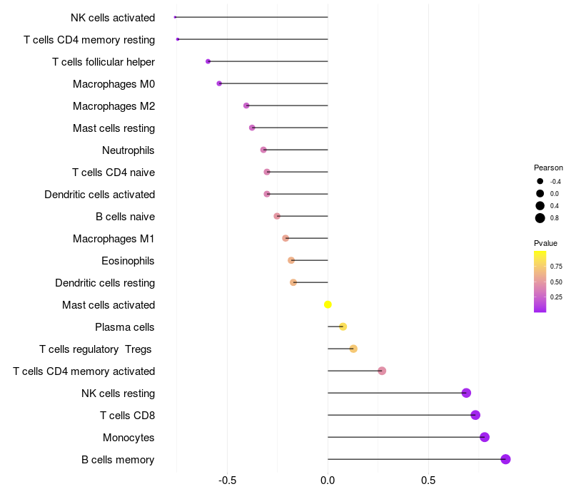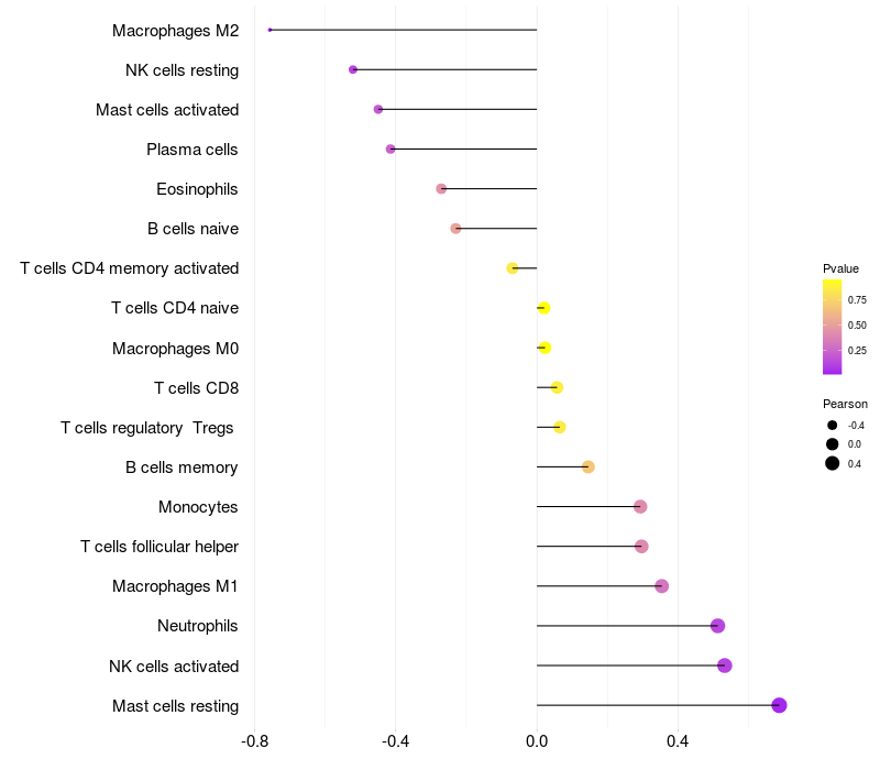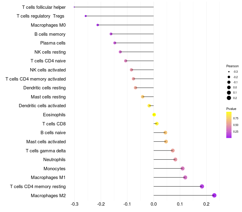 Lollipop of MAP3K2 expression and immune infiltrating cell level correlation result in HBV+ Liver cirrhosis samples