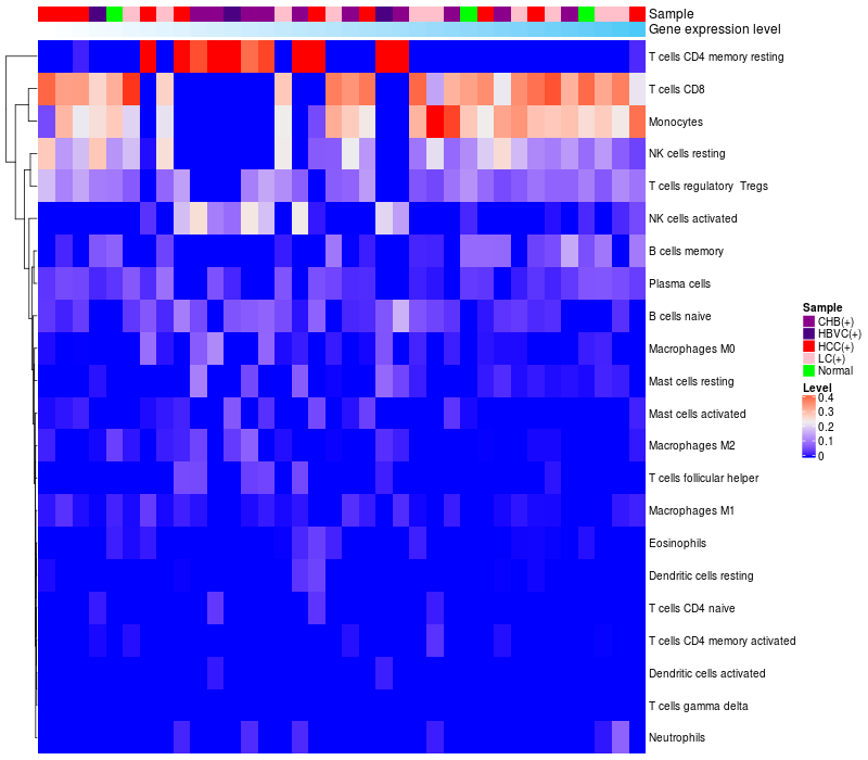 Relationship between gene expression and immune infiltrating cell level