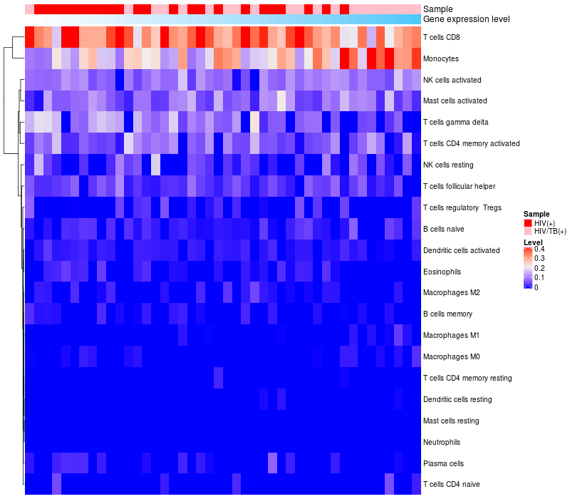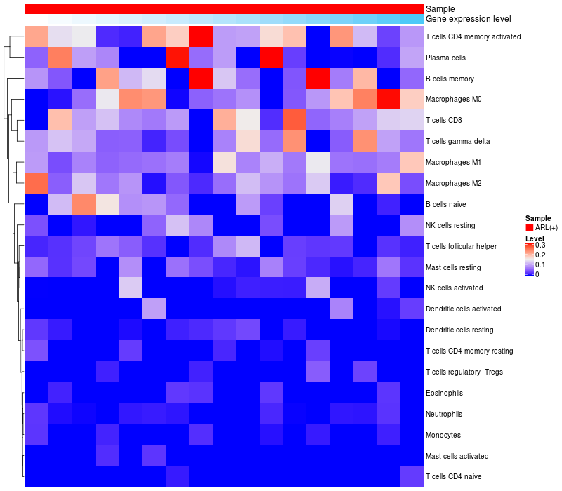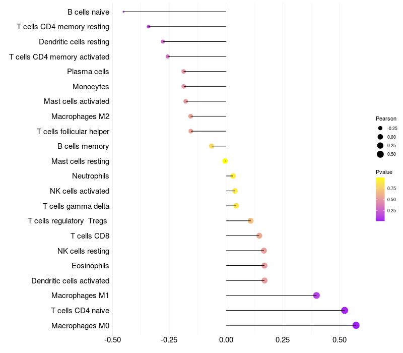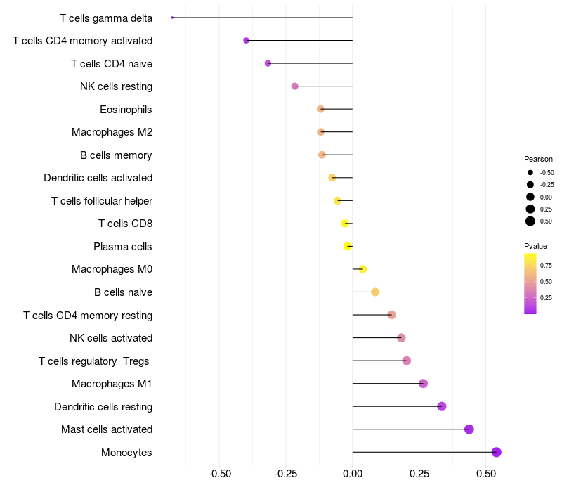 Relationship between gene expression and immune infiltrating cell level