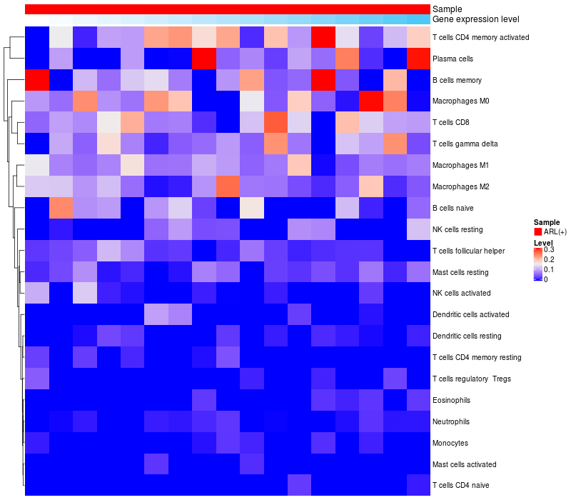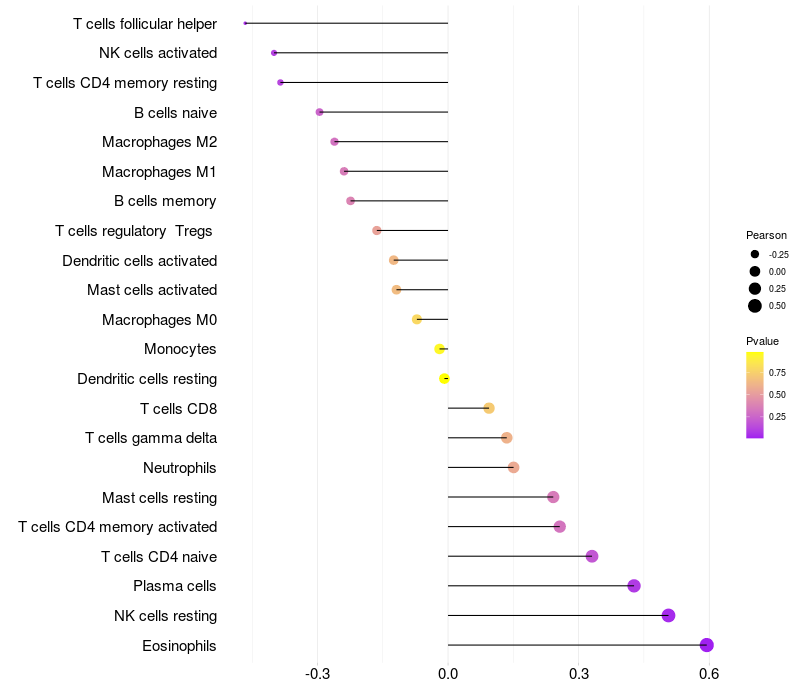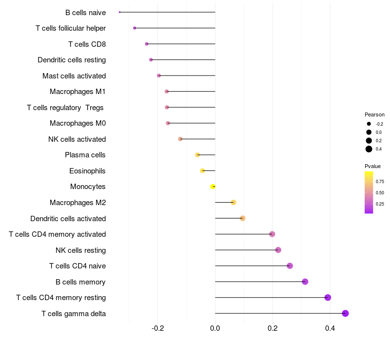 Relationship between gene expression and immune infiltrating cell level