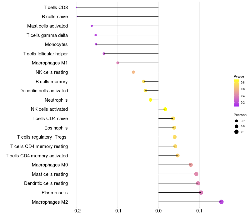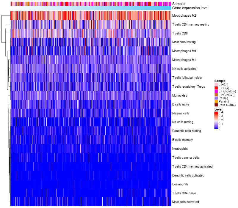 Relationship between gene expression and immune infiltrating cell level