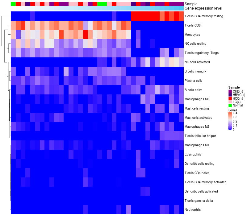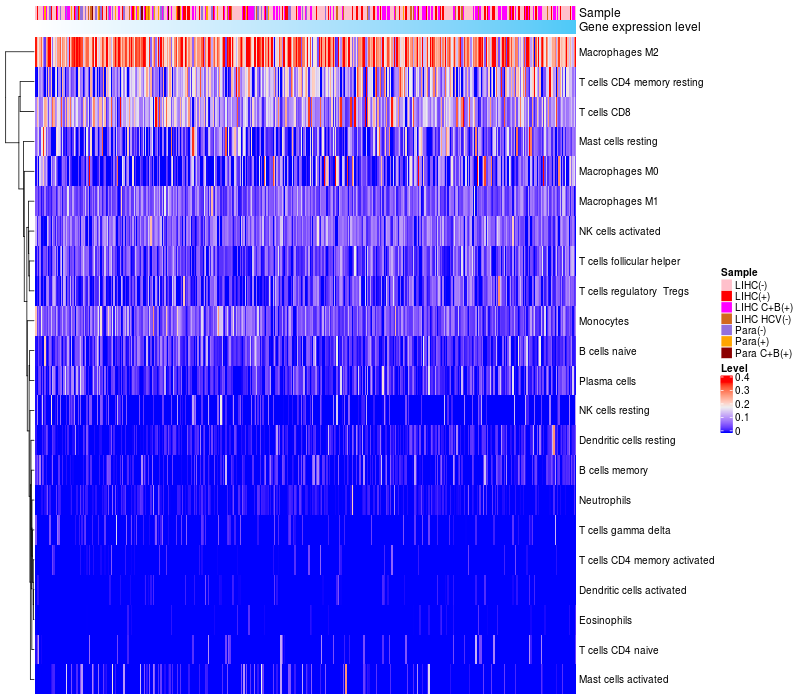 Liver hepatocellular carcinoma HCV (HBV+)(86), Liver hepatocellular carcinoma HCV (HBV-)(19), Liver hepatocellular carcinoma (HBV+)(209), Liver hepatocellular carcinoma (HBV+)(60), Paracancerous HCV (HBV+)(4), Paracancerous (HBV-)(28), Paracancerous (HBV+)(18) |