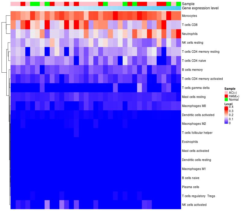 Normal (8), Asymptomatic carriers (HTLV1+)(17), HTLV-1-associated myelopathy (HTLV1+)(10) |
