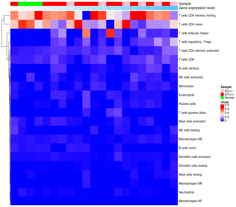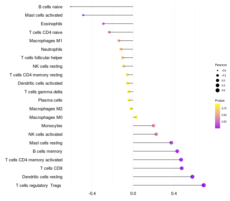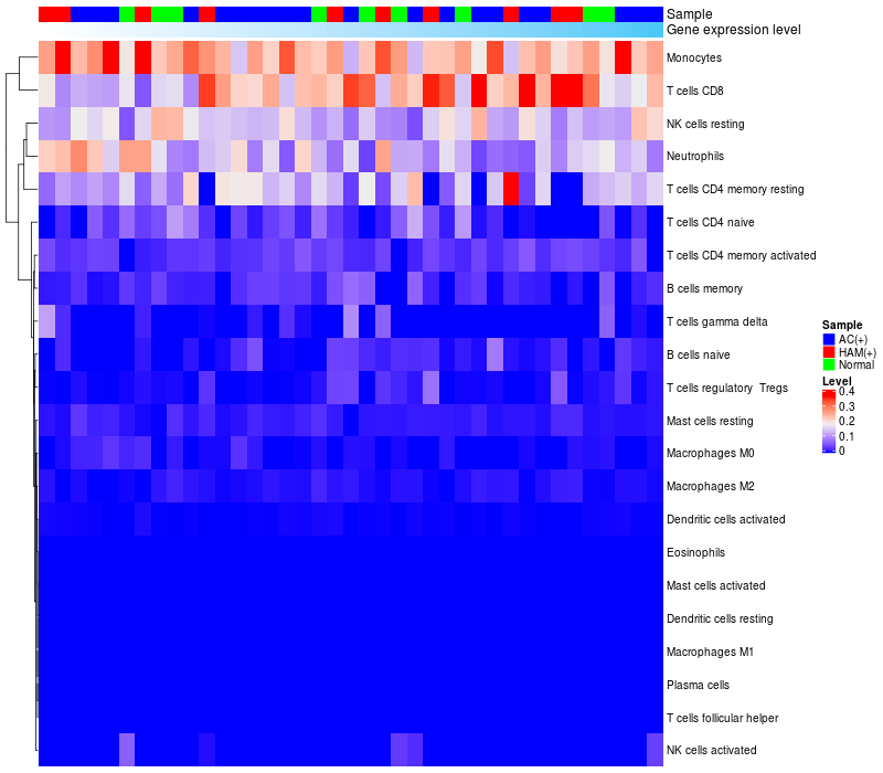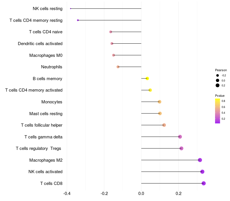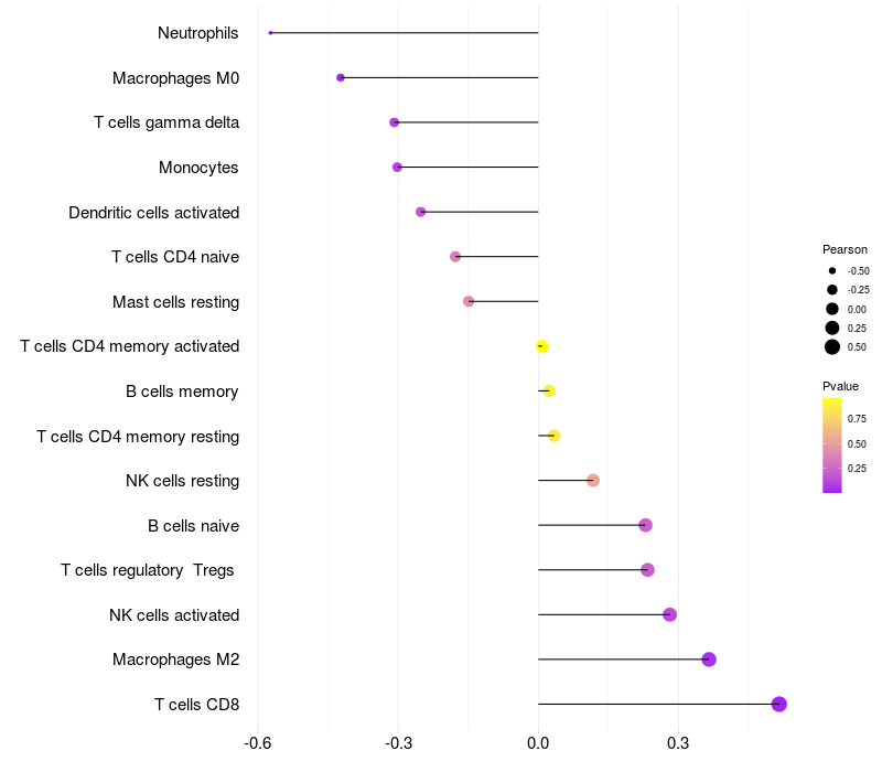 Relationship between gene expression and immune infiltrating cell level