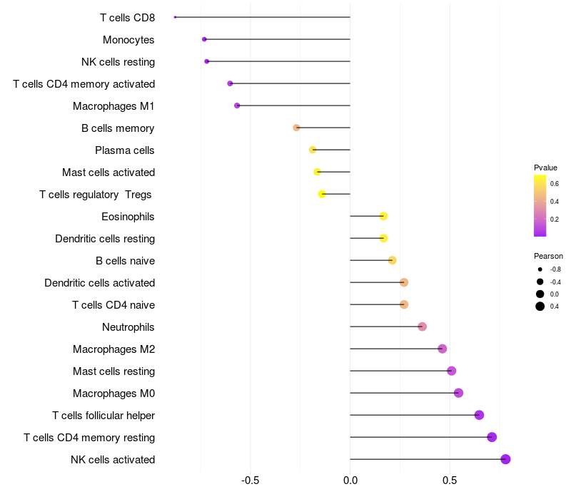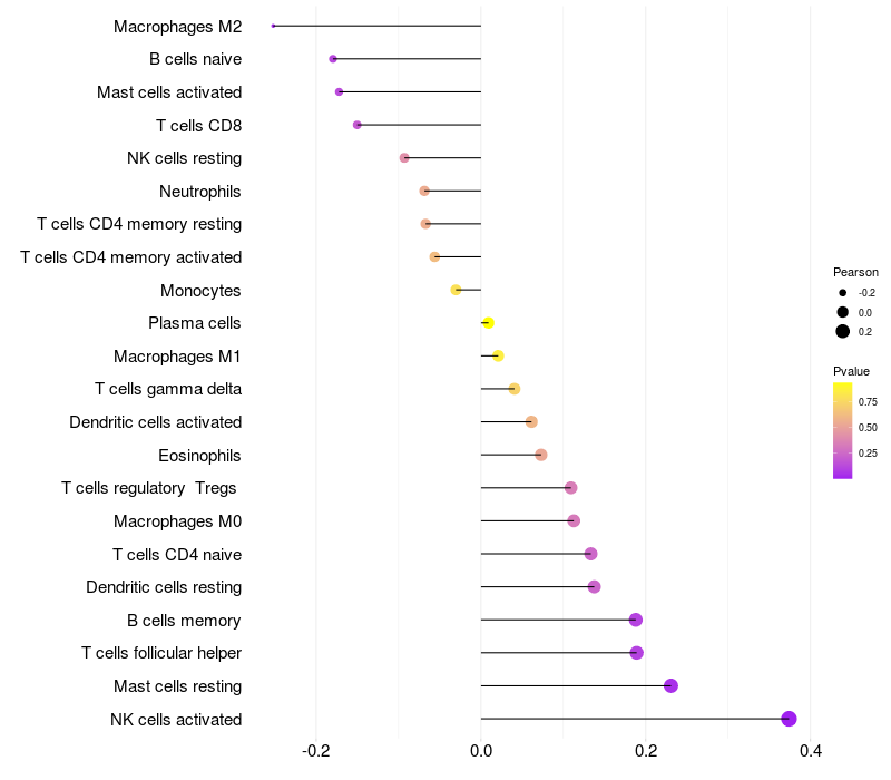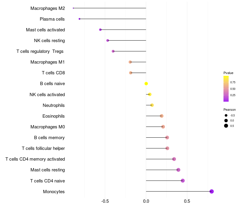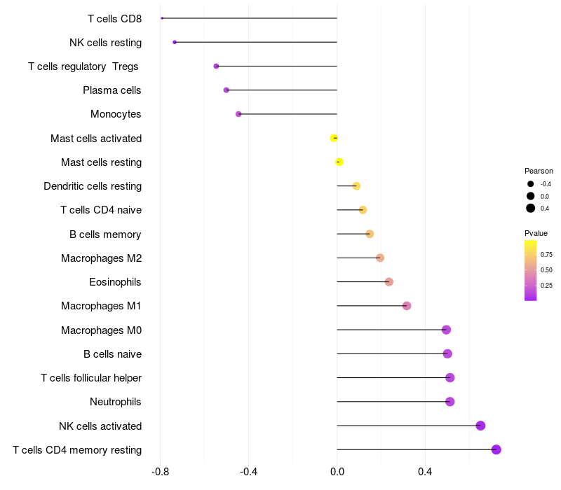 Lollipop of MAPKAP1 expression and immune infiltrating cell level correlation result in HBV+ Liver cirrhosis samples