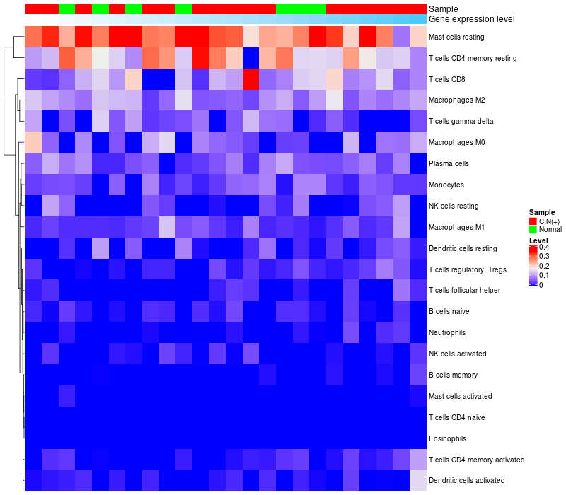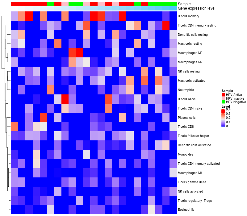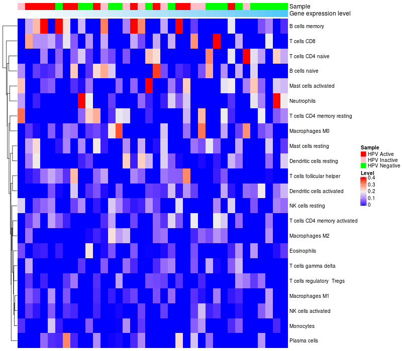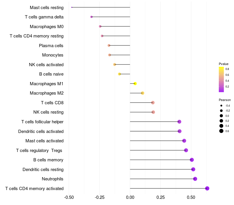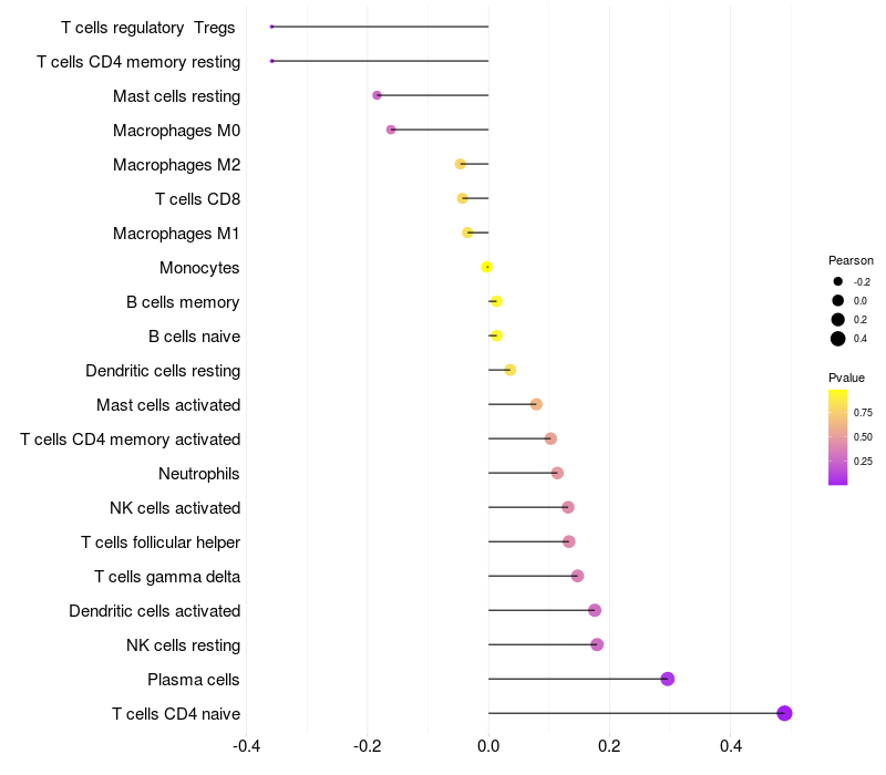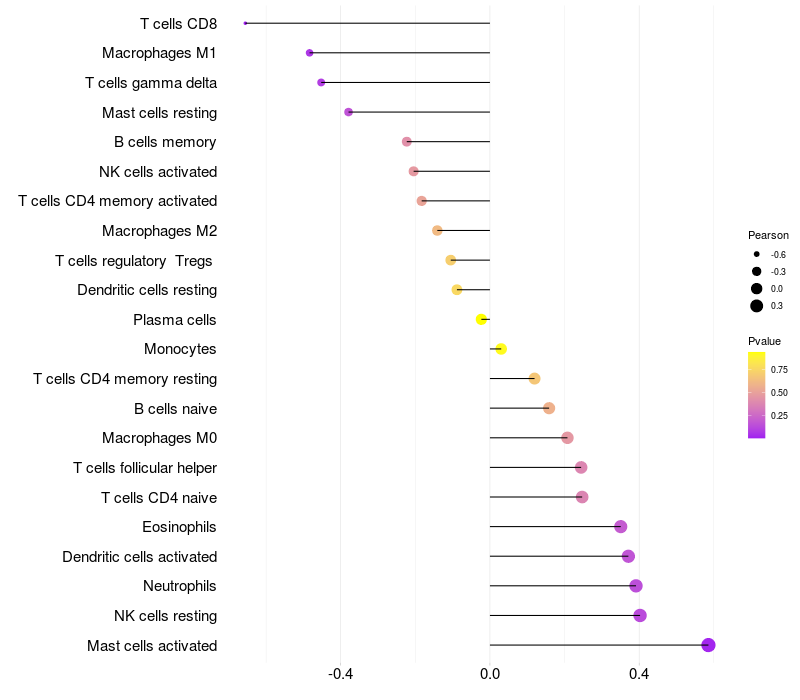 Lollipop of MAPKAPK5 expression and immune infiltrating cell level correlation result in HPV+ samples