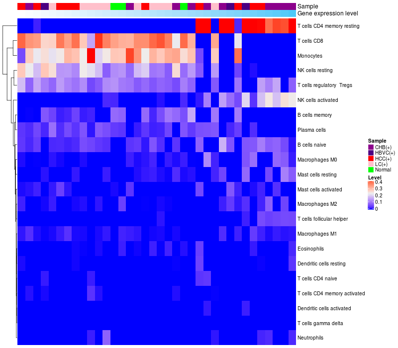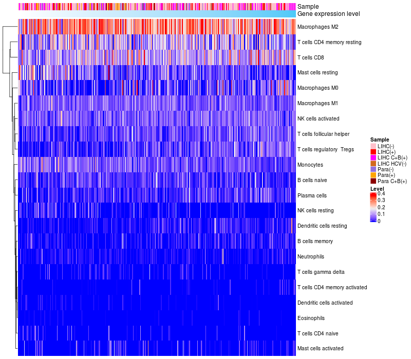Liver hepatocellular carcinoma HCV (HBV+)(86), Liver hepatocellular carcinoma HCV (HBV-)(19), Liver hepatocellular carcinoma (HBV+)(209), Liver hepatocellular carcinoma (HBV+)(60), Paracancerous HCV (HBV+)(4), Paracancerous (HBV-)(28), Paracancerous (HBV+)(18) |