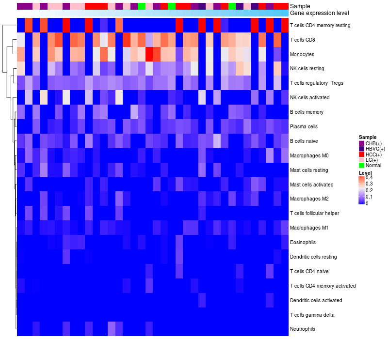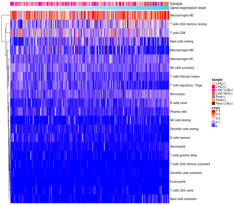 Liver hepatocellular carcinoma HCV (HBV+)(86), Liver hepatocellular carcinoma HCV (HBV-)(19), Liver hepatocellular carcinoma (HBV+)(209), Liver hepatocellular carcinoma (HBV+)(60), Paracancerous HCV (HBV+)(4), Paracancerous (HBV-)(28), Paracancerous (HBV+)(18) |