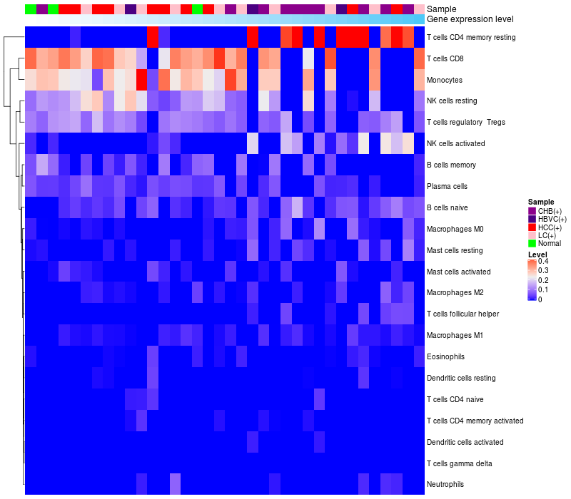 Liver hepatocellular carcinoma HCV (HBV+)(86), Liver hepatocellular carcinoma HCV (HBV-)(19), Liver hepatocellular carcinoma (HBV+)(209), Liver hepatocellular carcinoma (HBV+)(60), Paracancerous HCV (HBV+)(4), Paracancerous (HBV-)(28), Paracancerous (HBV+)(18) |