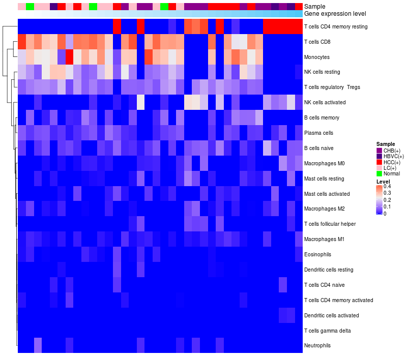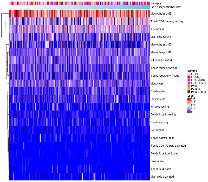 Liver hepatocellular carcinoma HCV (HBV+)(86), Liver hepatocellular carcinoma HCV (HBV-)(19), Liver hepatocellular carcinoma (HBV+)(209), Liver hepatocellular carcinoma (HBV+)(60), Paracancerous HCV (HBV+)(4), Paracancerous (HBV-)(28), Paracancerous (HBV+)(18) |