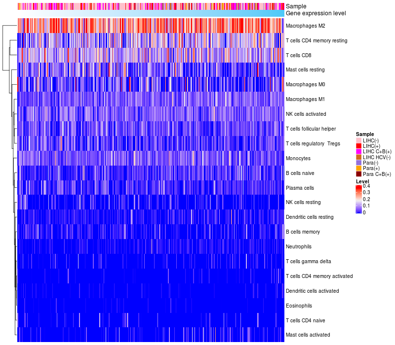 Liver hepatocellular carcinoma HCV (HBV+)(86), Liver hepatocellular carcinoma HCV (HBV-)(19), Liver hepatocellular carcinoma (HBV+)(209), Liver hepatocellular carcinoma (HBV+)(60), Paracancerous HCV (HBV+)(4), Paracancerous (HBV-)(28), Paracancerous (HBV+)(18) |