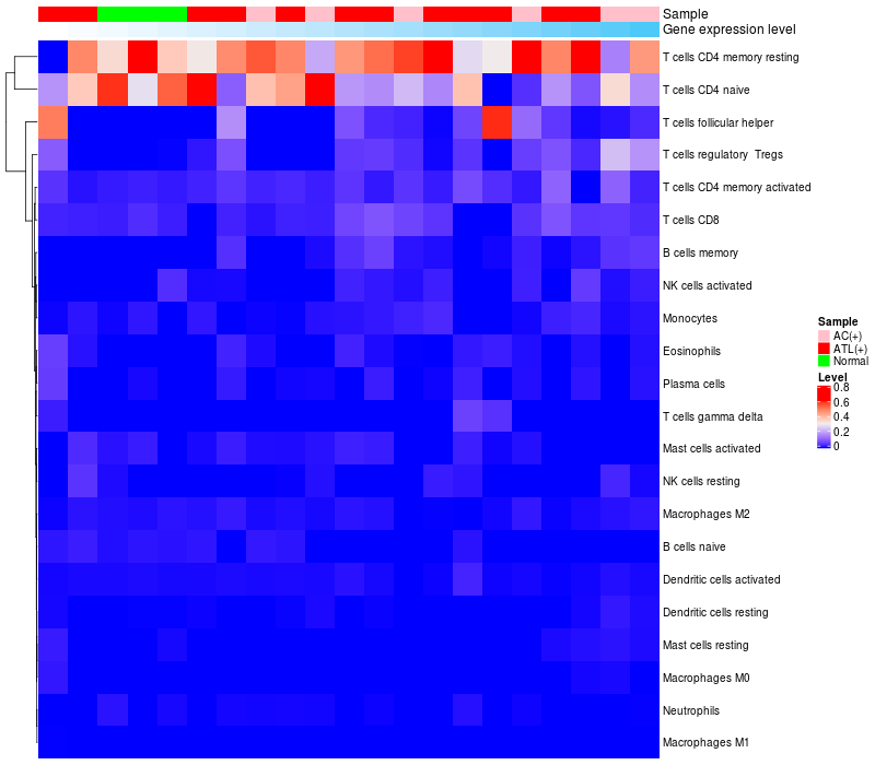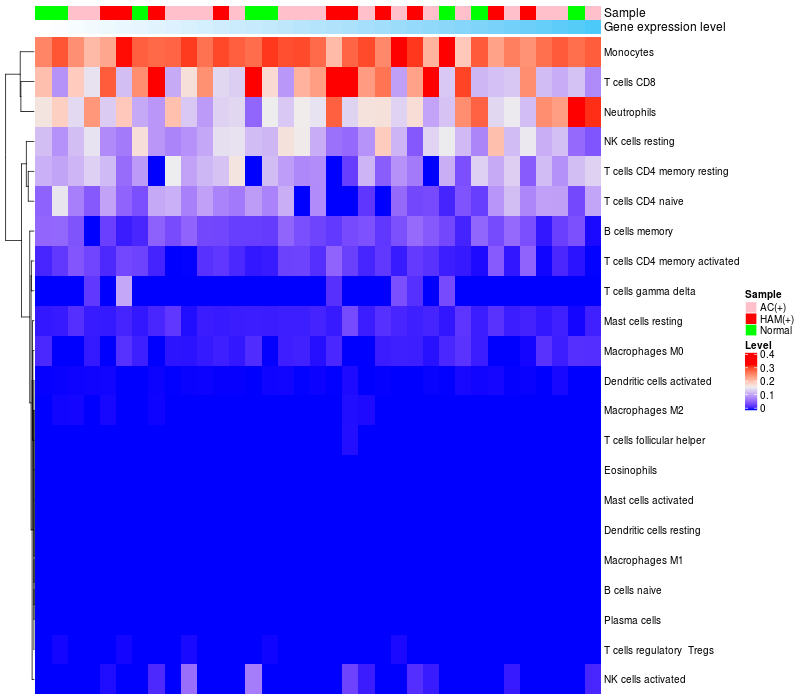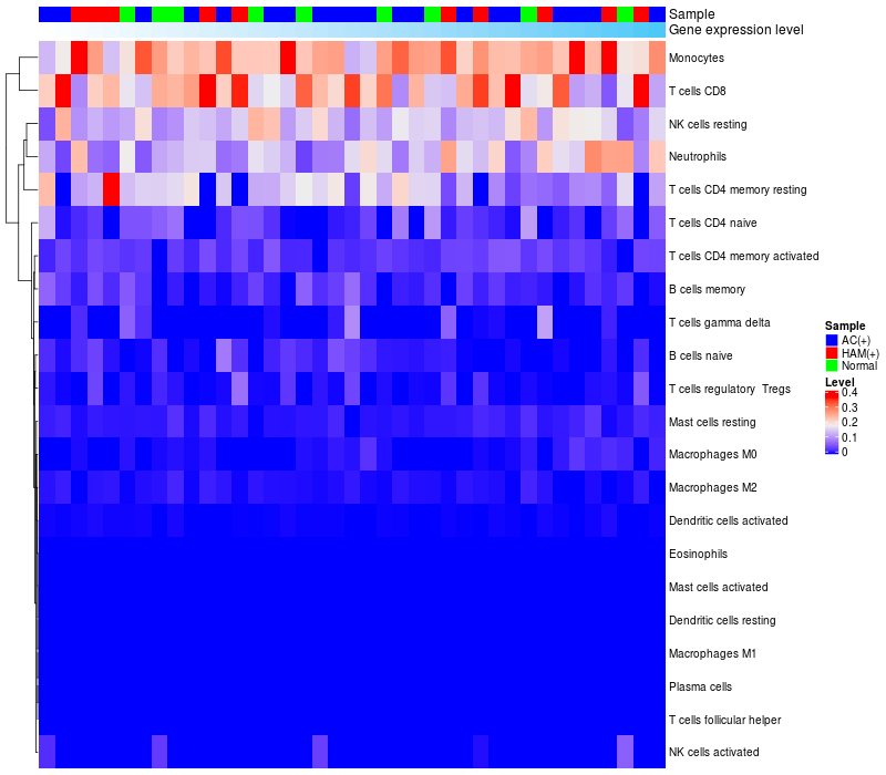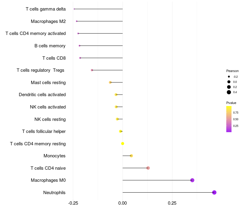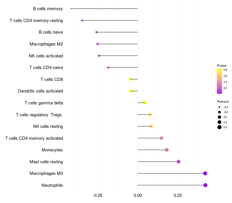 Relationship between gene expression and immune infiltrating cell level