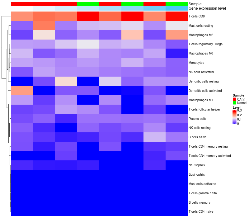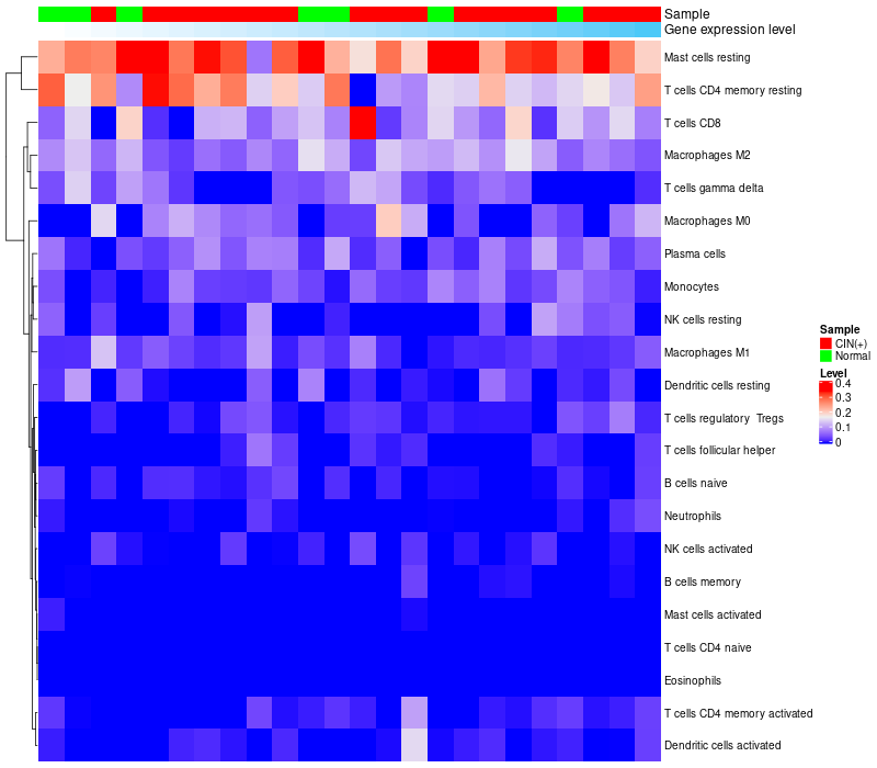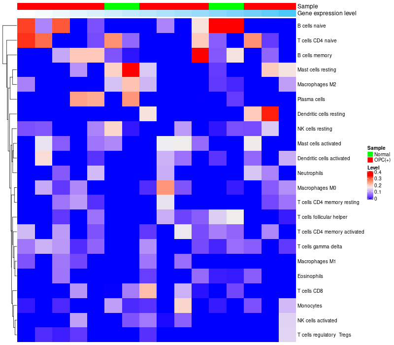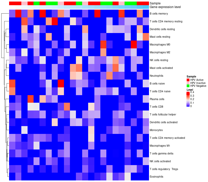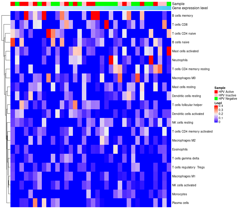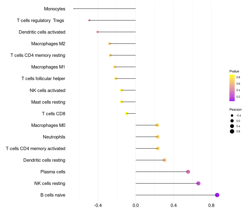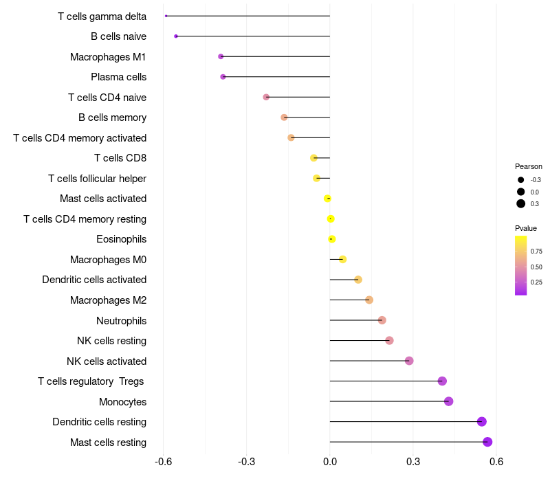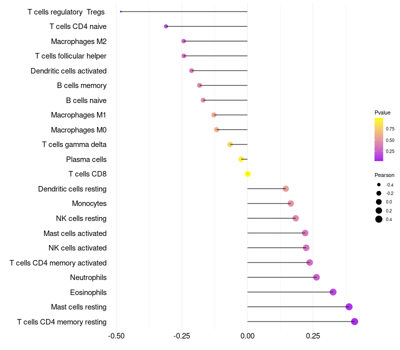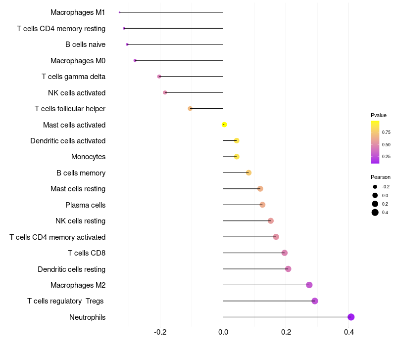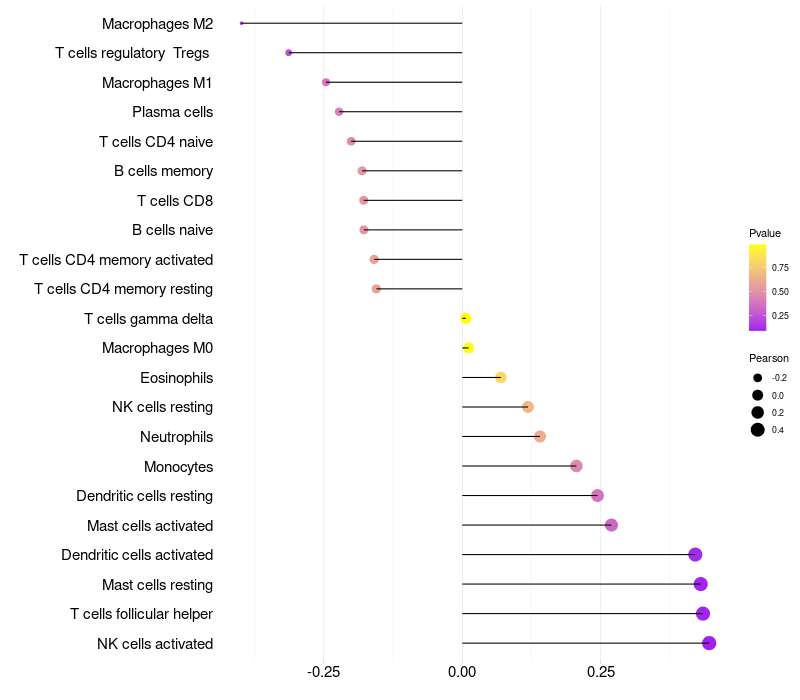 Lollipop of MC2R expression and immune infiltrating cell level correlation result in HPV+ samples