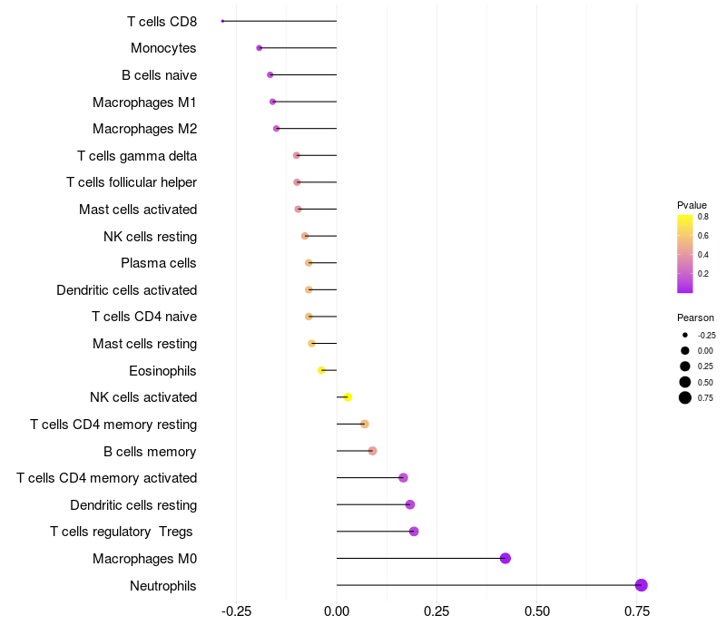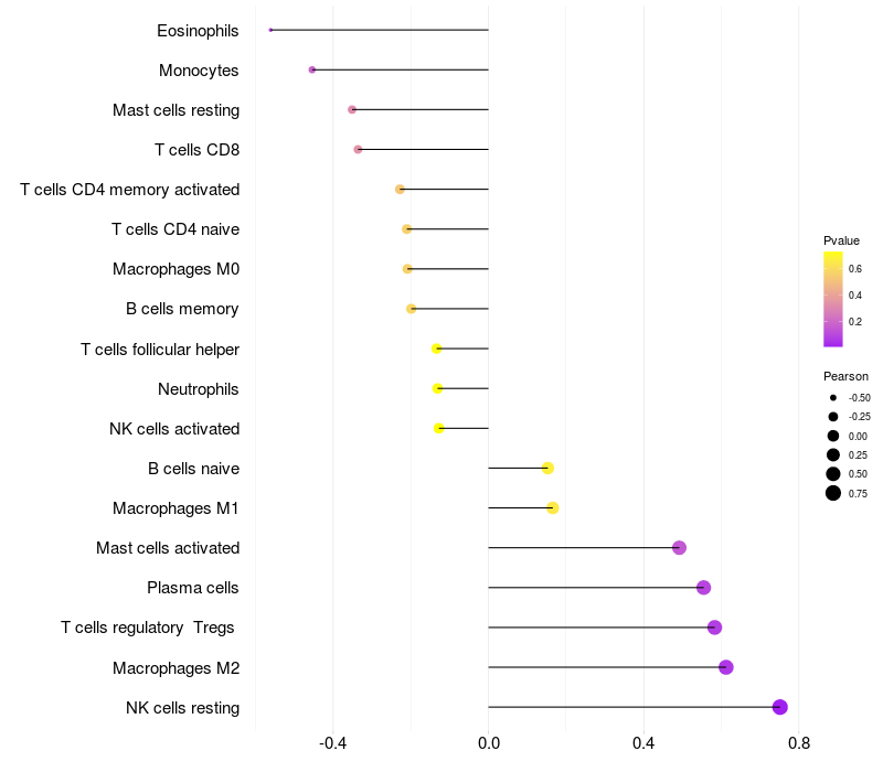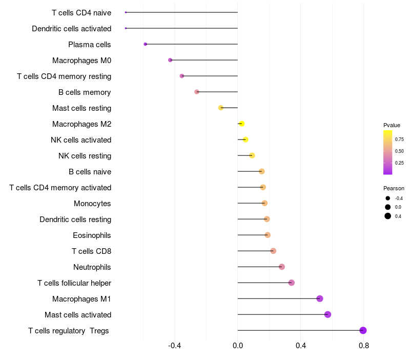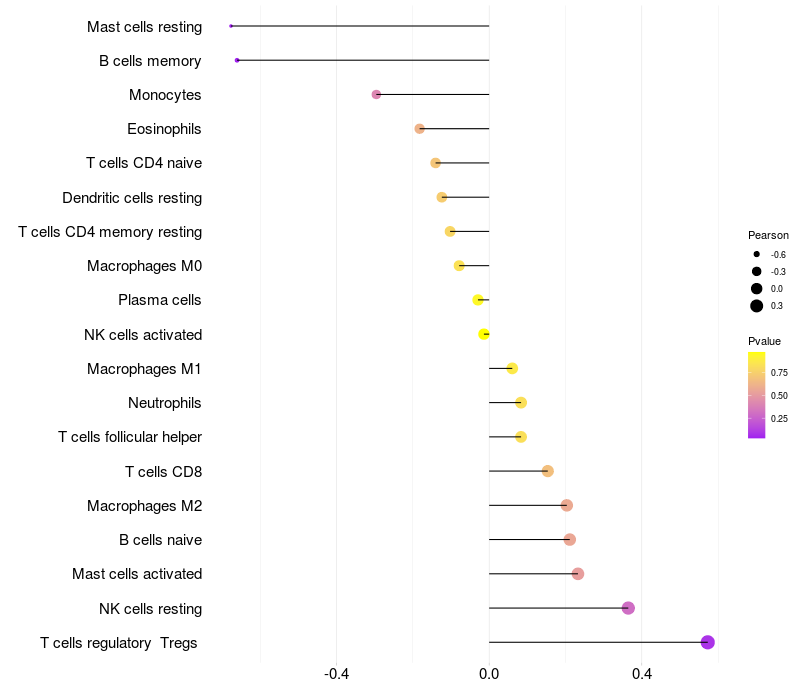 Lollipop of MCF2L2 expression and immune infiltrating cell level correlation result in HBV+ Liver cirrhosis samples
