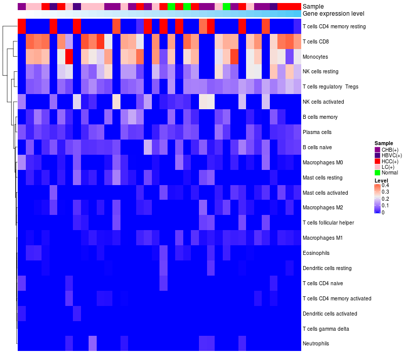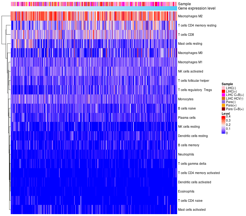 Liver hepatocellular carcinoma HCV (HBV+)(86), Liver hepatocellular carcinoma HCV (HBV-)(19), Liver hepatocellular carcinoma (HBV+)(209), Liver hepatocellular carcinoma (HBV+)(60), Paracancerous HCV (HBV+)(4), Paracancerous (HBV-)(28), Paracancerous (HBV+)(18) |