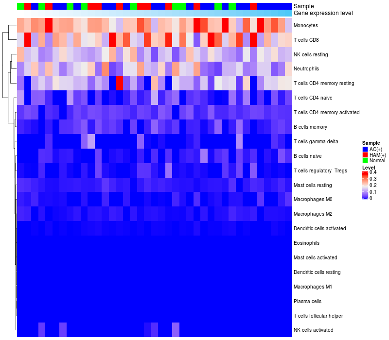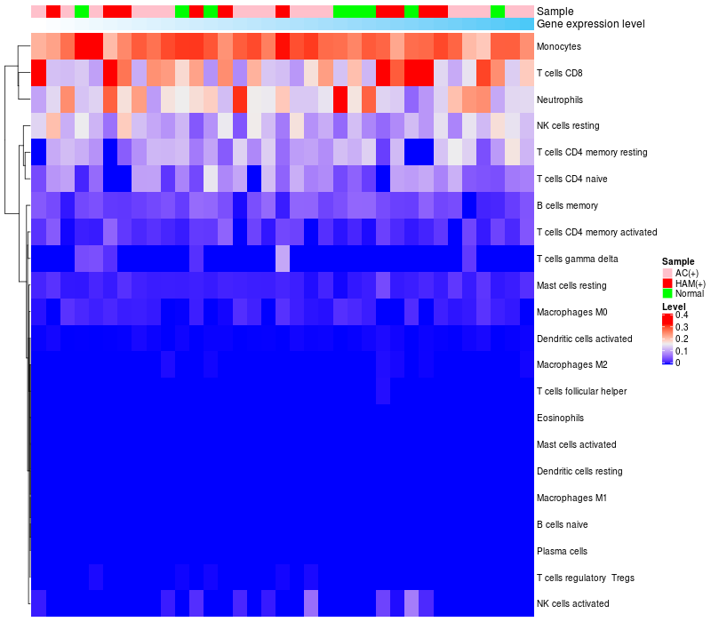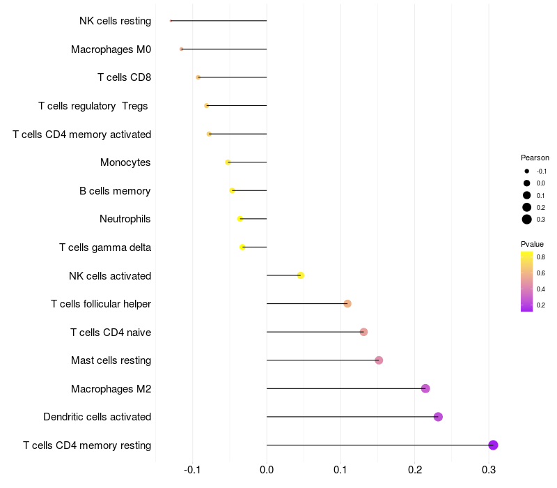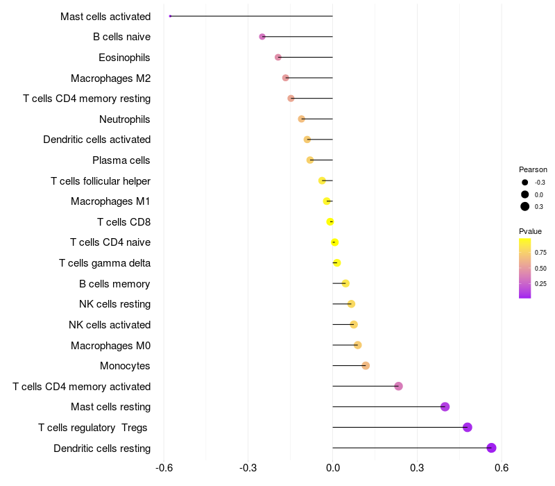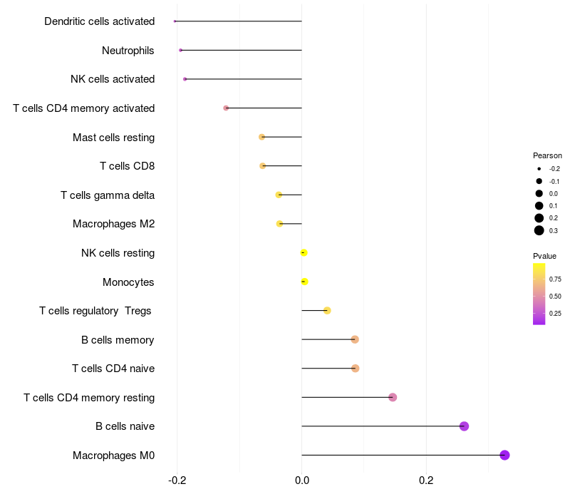 Lollipop of MCHR2 expression and immune infiltrating cell level correlation result in HTLV1+ samples