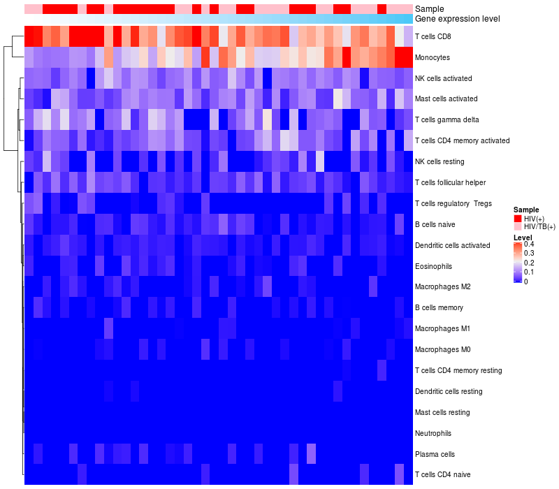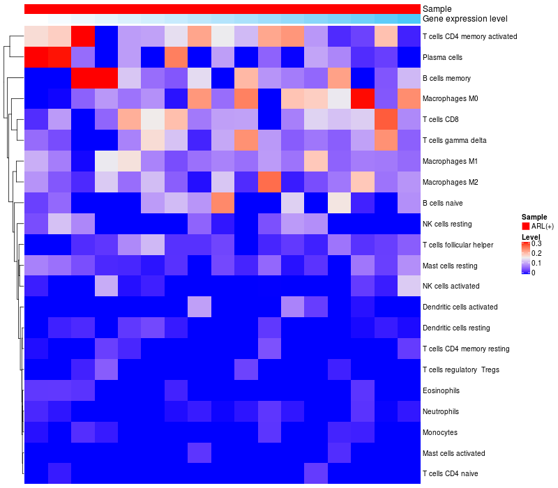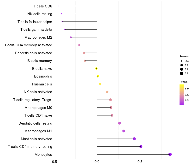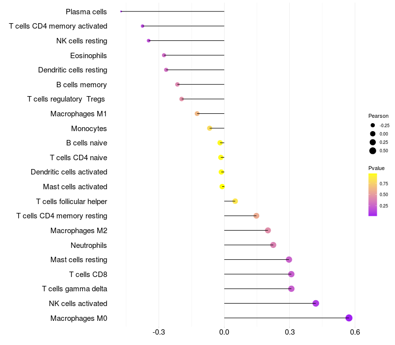 Relationship between gene expression and immune infiltrating cell level