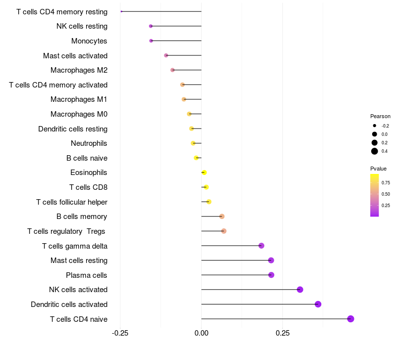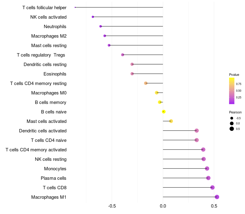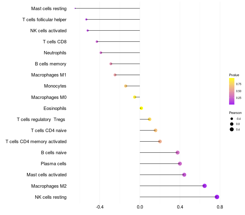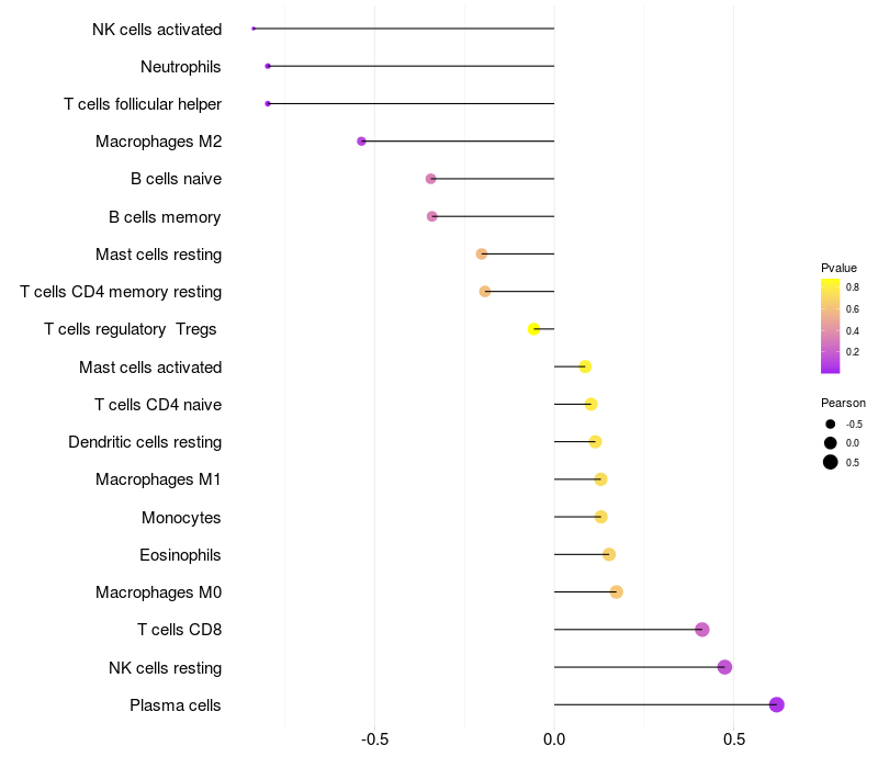 Lollipop of MDGA1 expression and immune infiltrating cell level correlation result in HBV+ Liver cirrhosis samples
