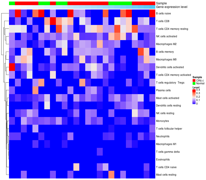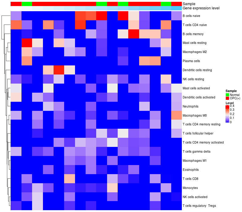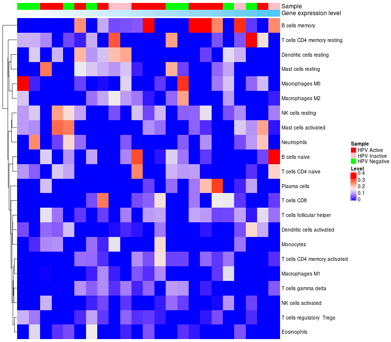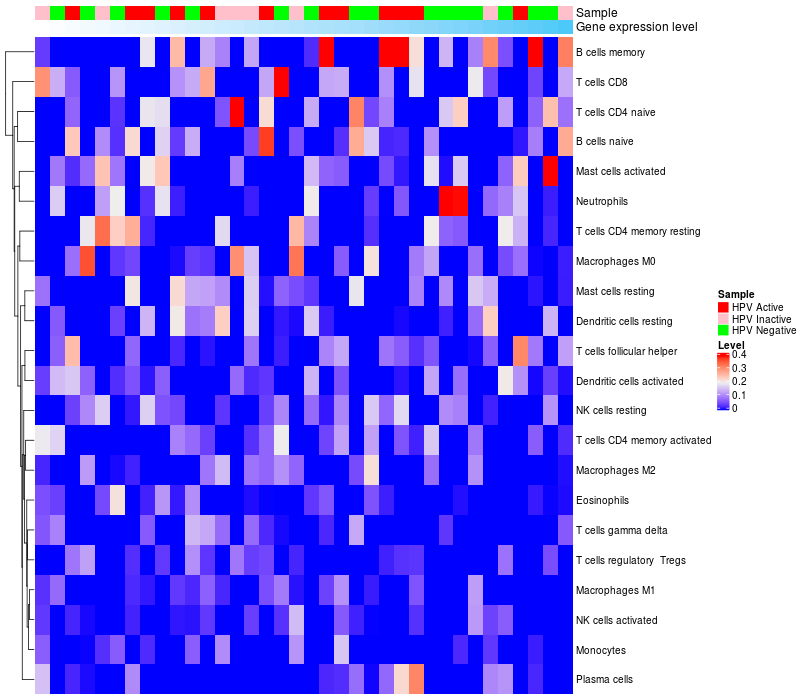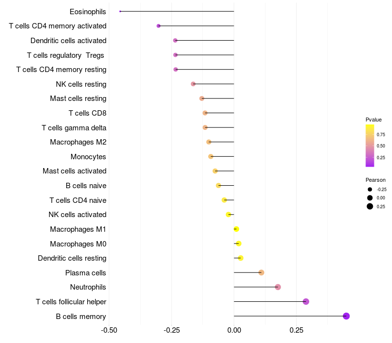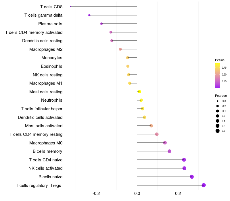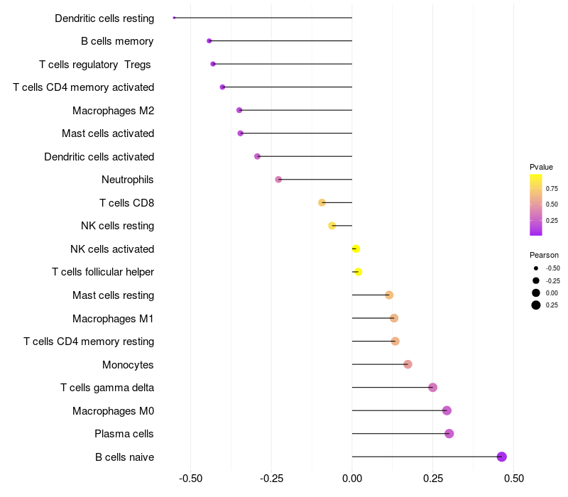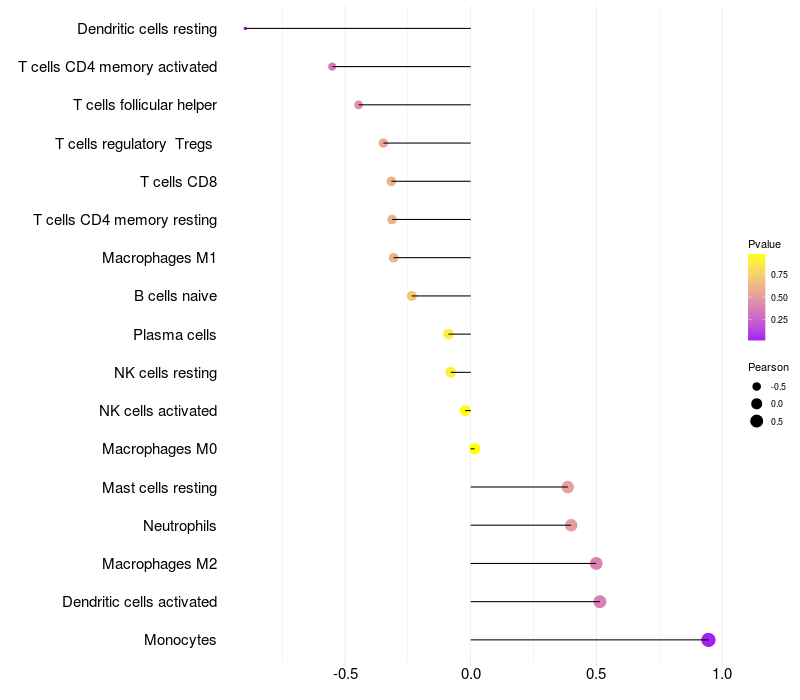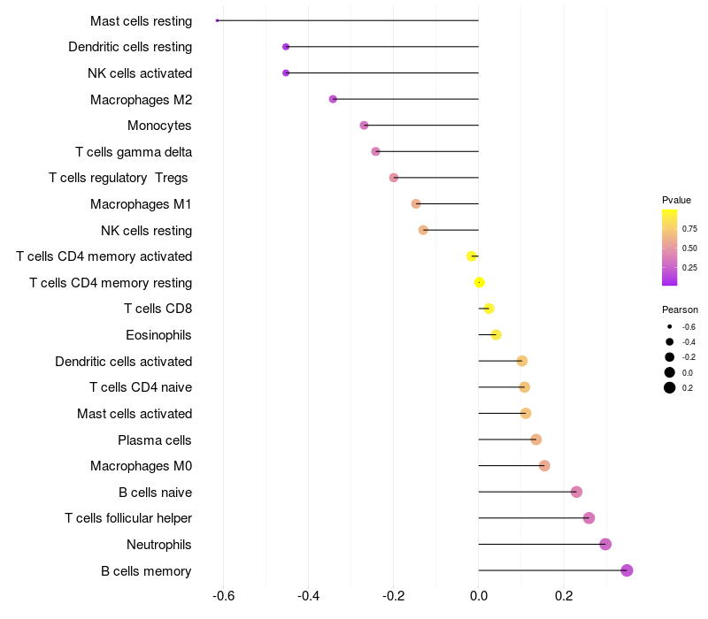 Lollipop of MDN1 expression and immune infiltrating cell level correlation result in HPV+ samples