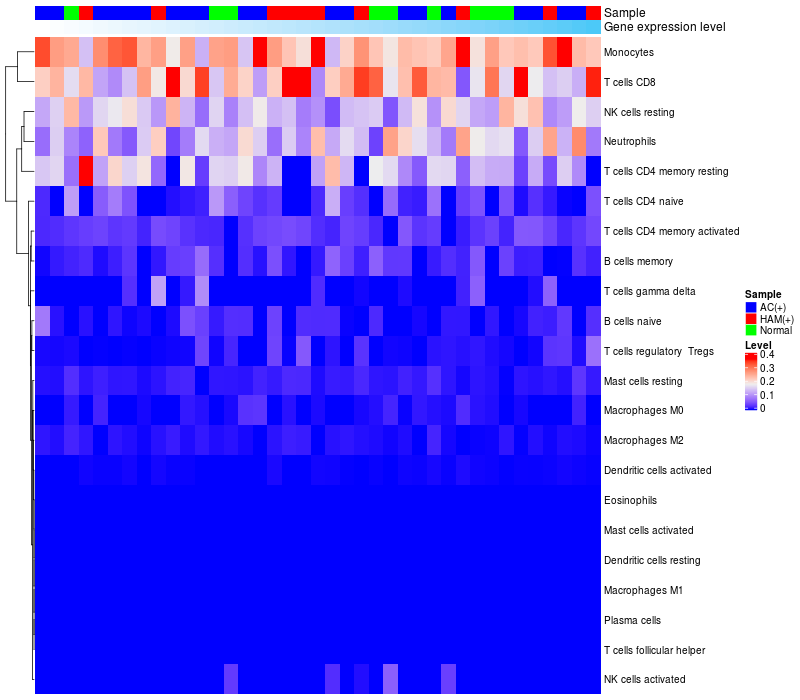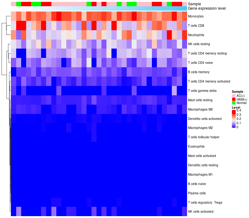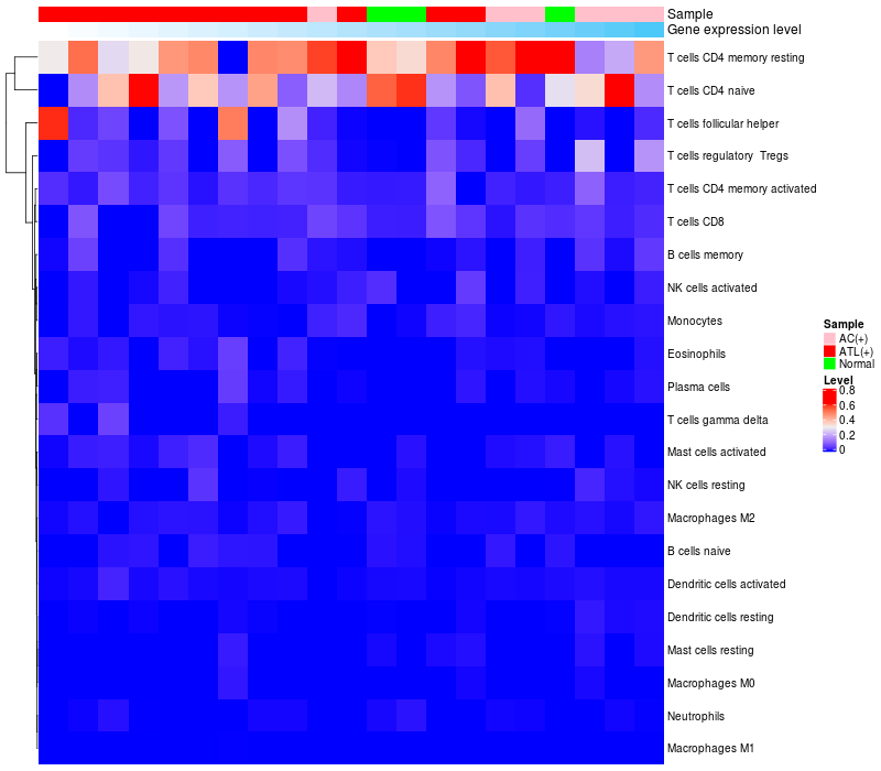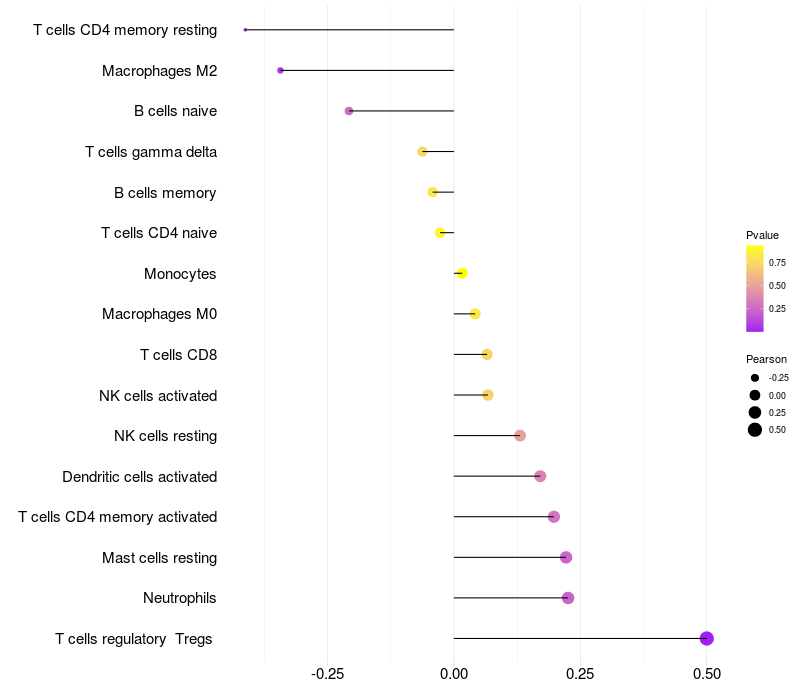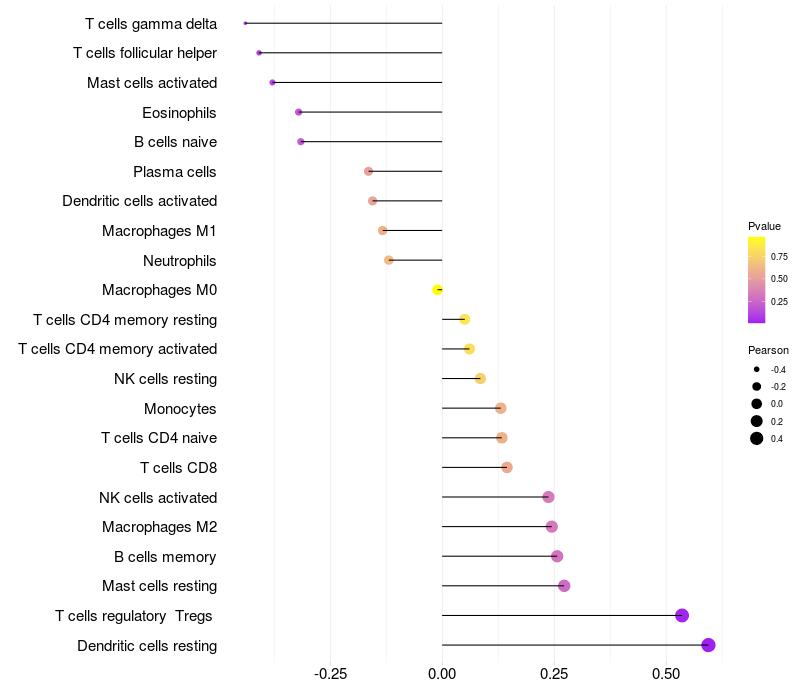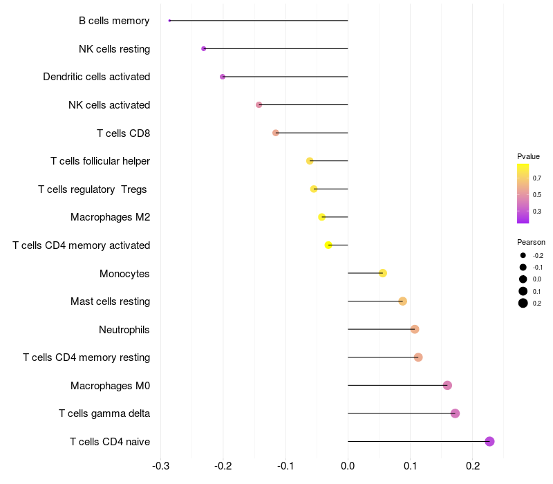 Relationship between gene expression and immune infiltrating cell level