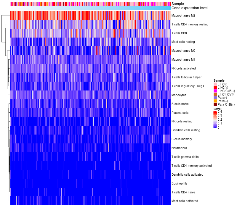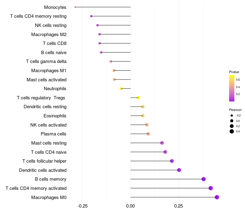 Relationship between gene expression and immune infiltrating cell level
